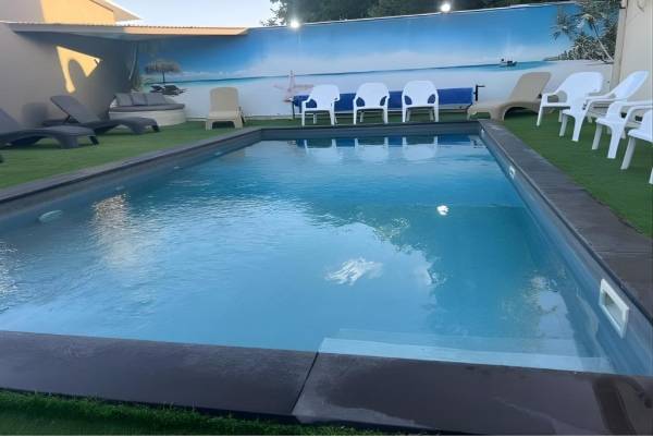 פינה בסגרה מיטות שיזוף ובריכה