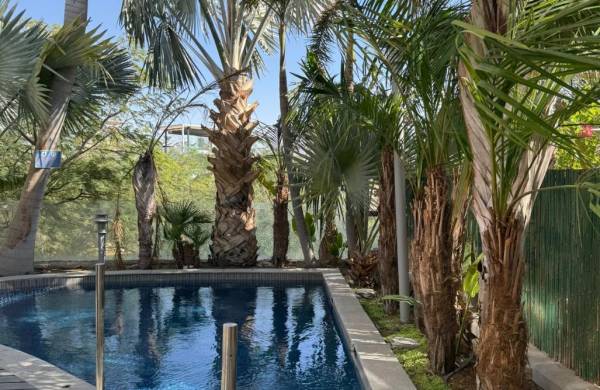 בריכת שחייה מחוממת ומיוחדת תחת עצי דקל