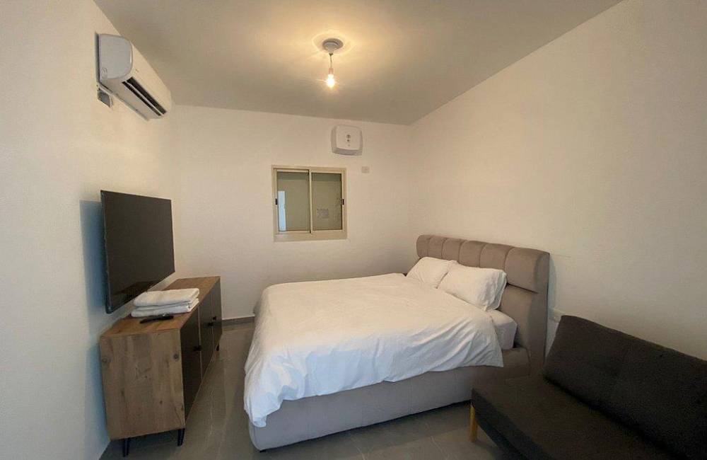מיטה זוגית, מיזוג אוויר, שידה, טלוויזיה