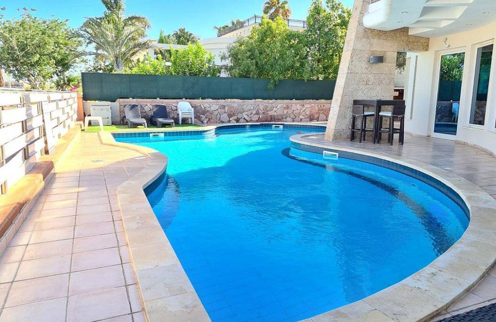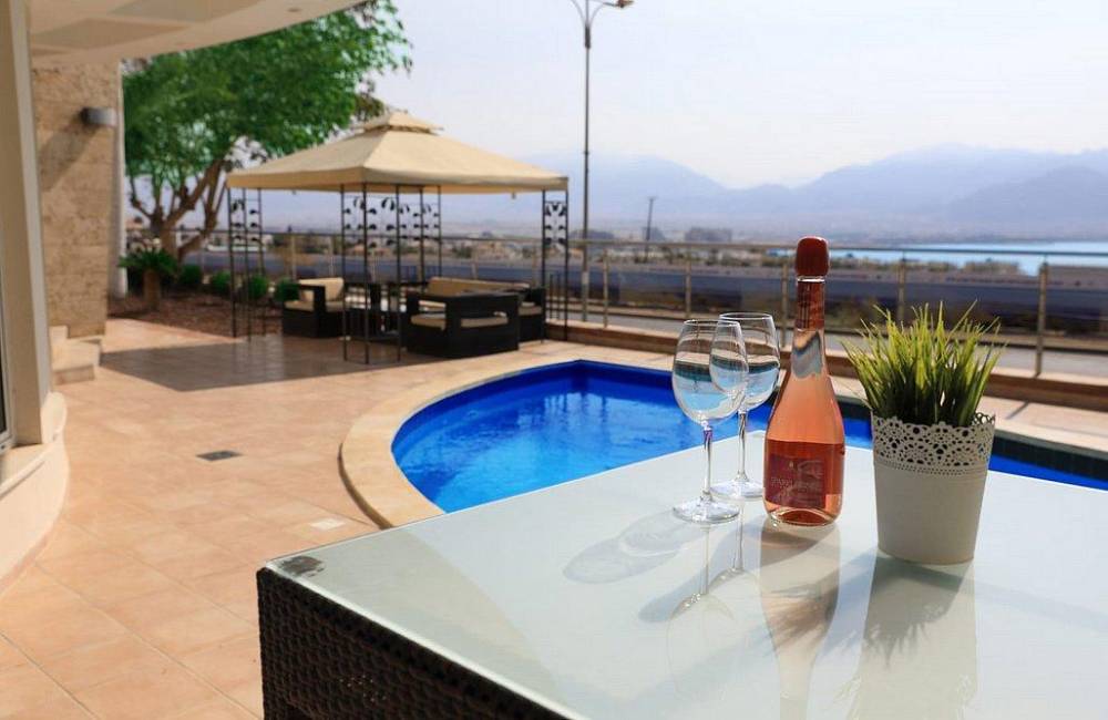 וילה קסומה לחופשה מהנה באילת, ממוקמת מול נוף מדהים של חוף הים ומונה בתוכה כ-5 חדרי שינה עם חדר רחצה פרטי, מטבח מאובזר בכל הדרוש, סלון רחב ידיים ופינת אוכל לסעודות בנוסף תוכלו ליהנות ממתחם חיצוני מרהיב עם בריכת שחייה צלולה, פינת גריל מקצועית וריהוט גן איכותי
