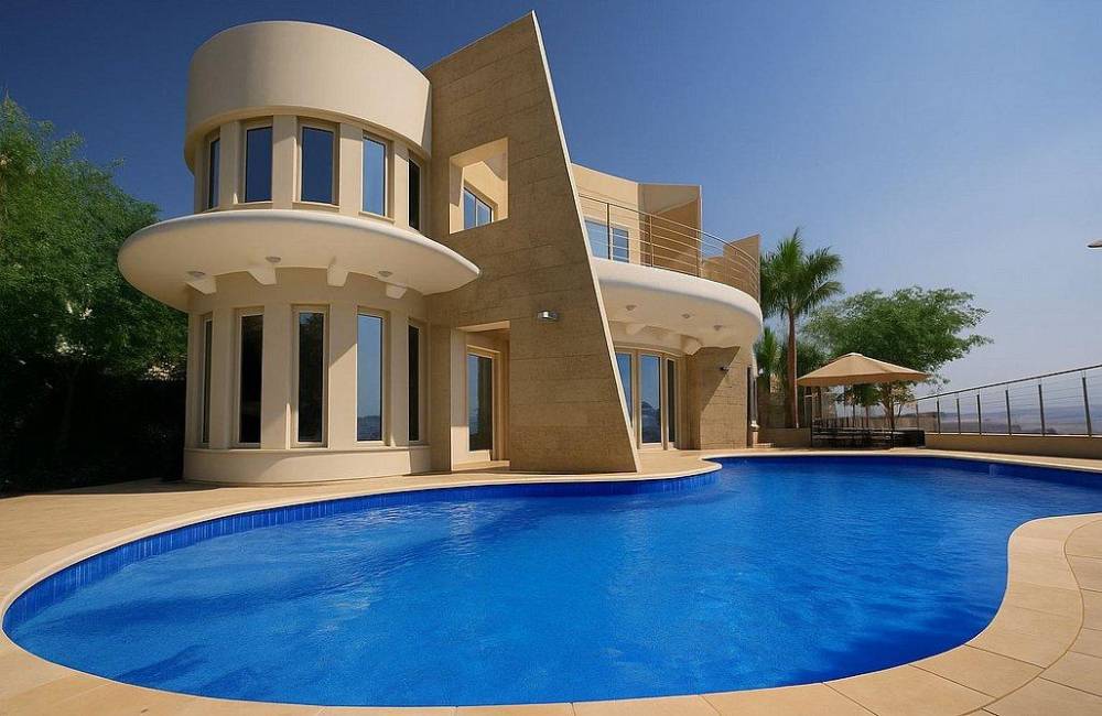 בריכת שחייה ענקית מגודרת עם ג'קוזי ספא מובנה בתוכה
