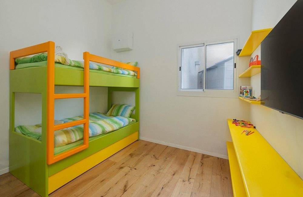 חדר ילדים ( ממ"ד) - מיטת קומותיים, מיטת חבר, מיזוג אוויר, טלויזיה חכמה.