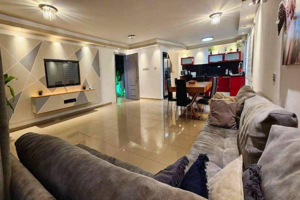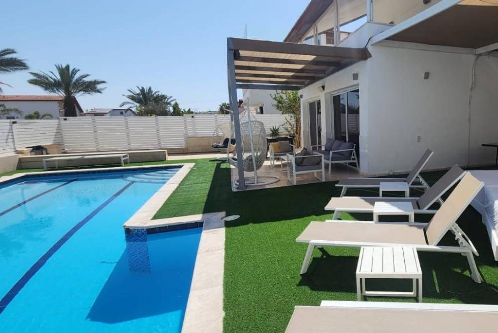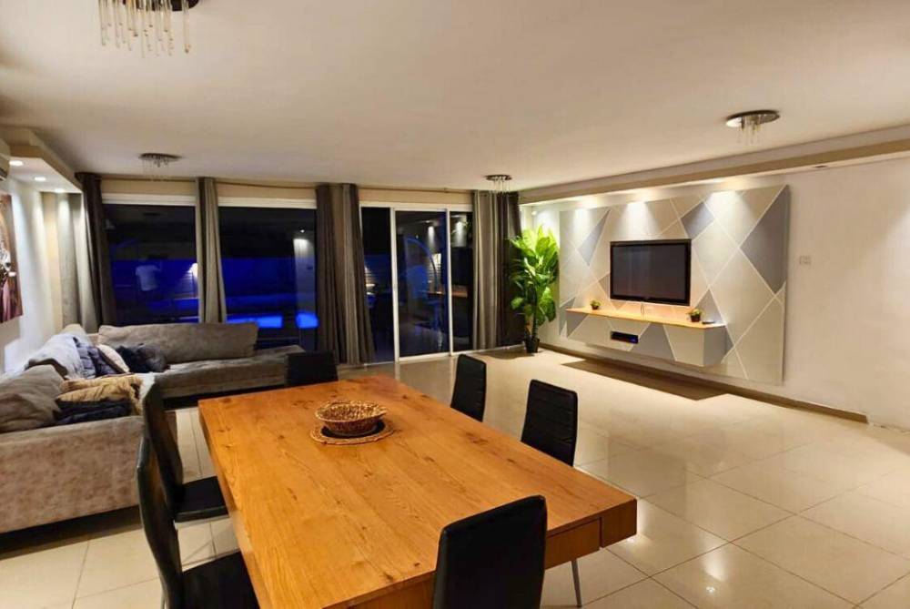 הוילה כוללת 6 חדרי שינה, סלון עם מערכות ישיבה ומסך טלוויזיה, מטבח מאובזר ופינת אוכל משפחתית.