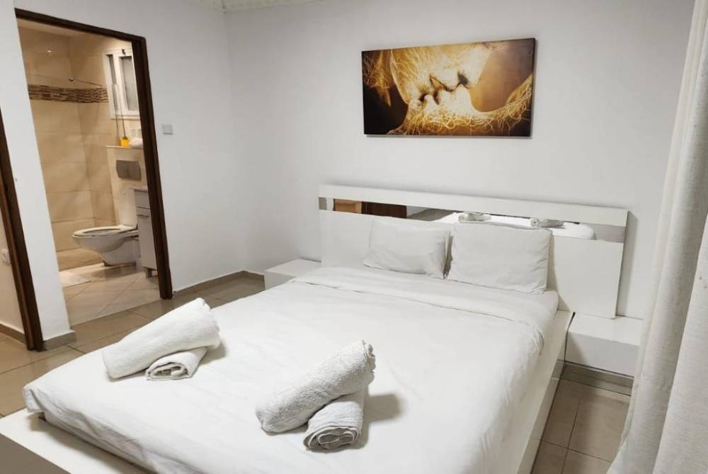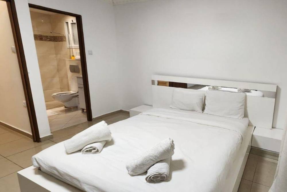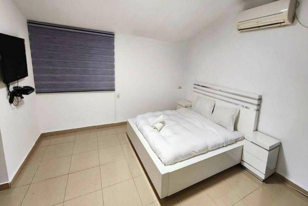 מיטה זוגית, ארון אחסון, קומודה, מזגן, טלוויזיה המחוברת ל- HOT