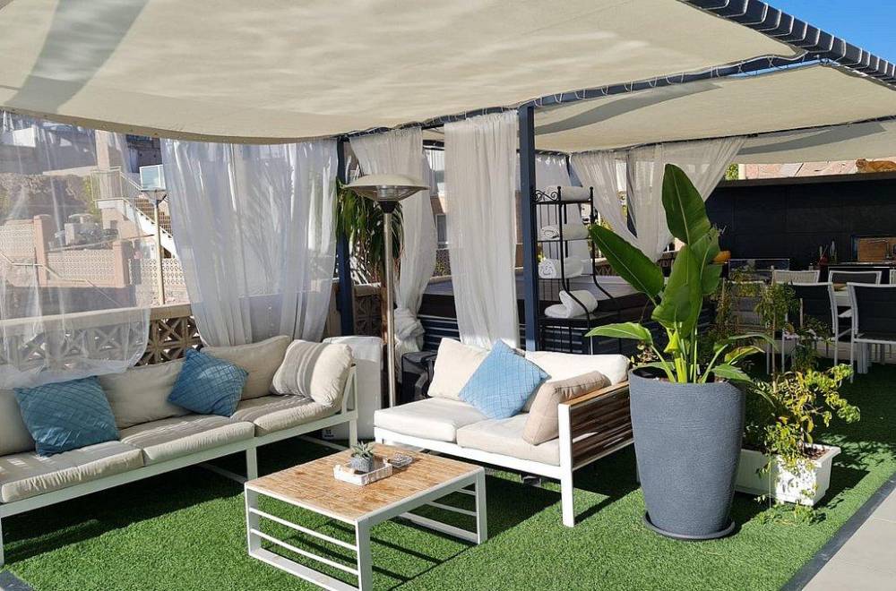 מטבח חיצוני: הכולל משטח עבודה, מנגל גז (אין להביא פחמים), כיור