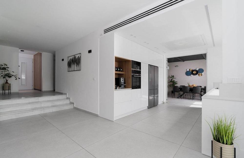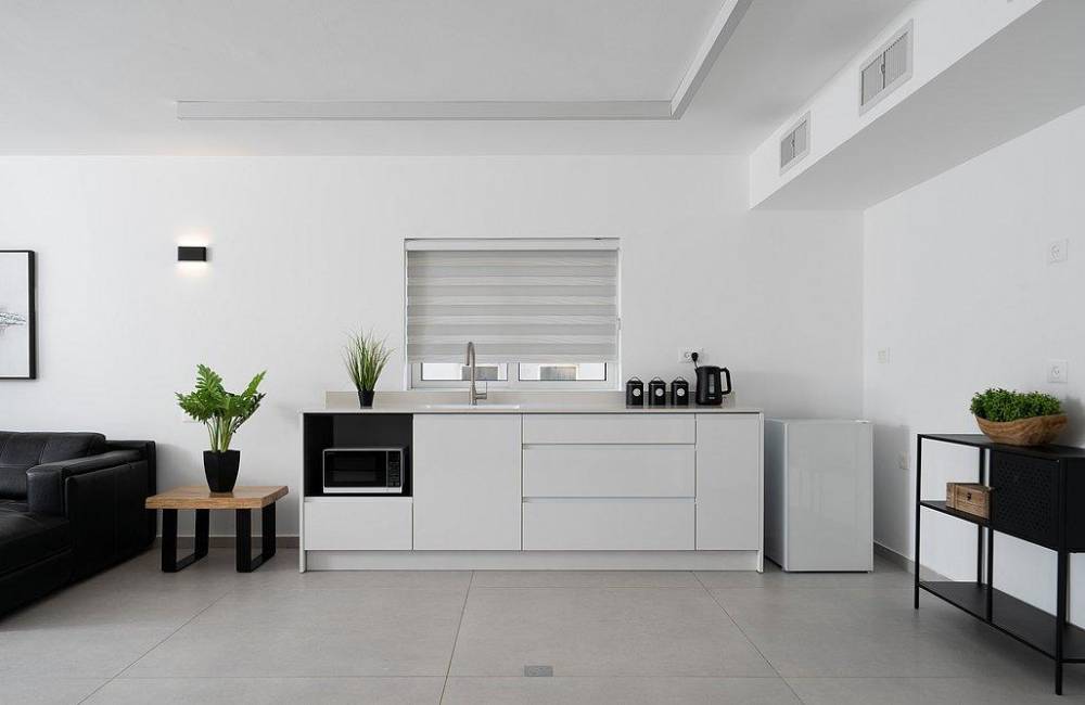 מטבח מאובזר הכולל: מקרר, מיקרוגל, תמי 4, תנור אפייה, כיריים גז