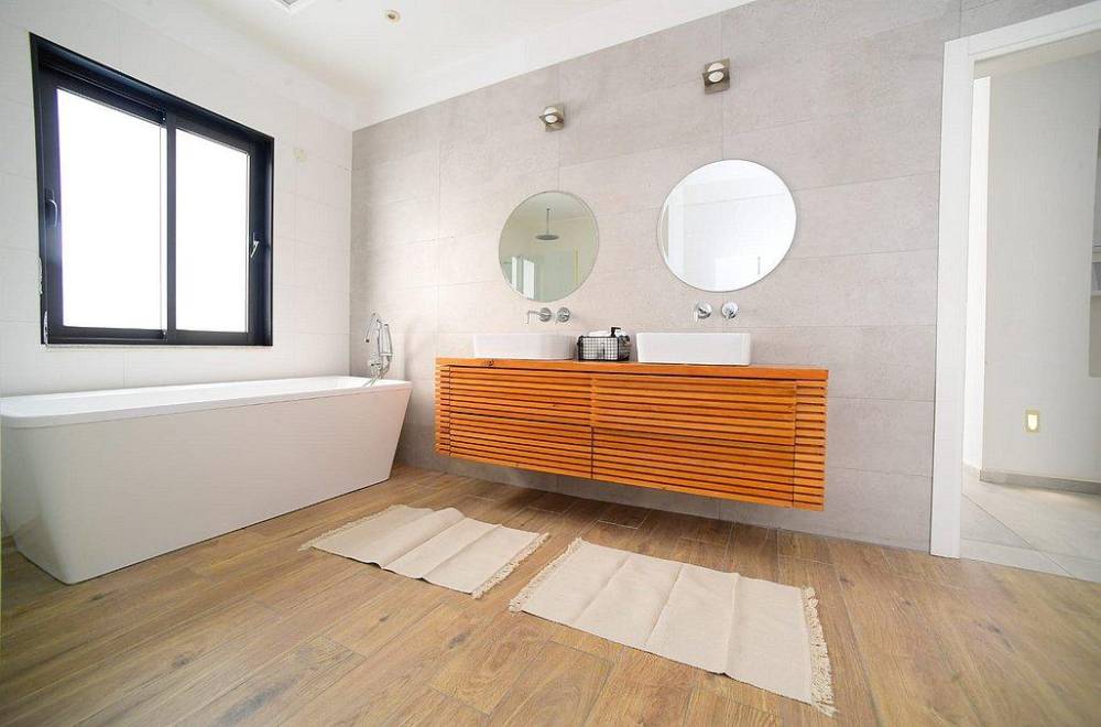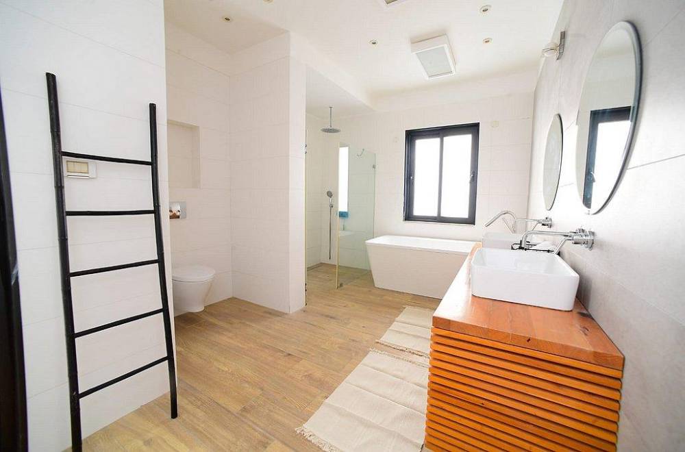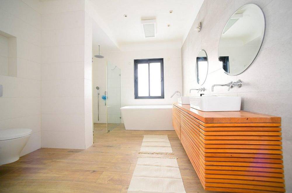 ל-2- חדרי שינה קיים חדר שירותים גדול הכולל -2- כיורים ומראות, שירותים ומקלחת וכן אמבטיה גדולה נפרדת