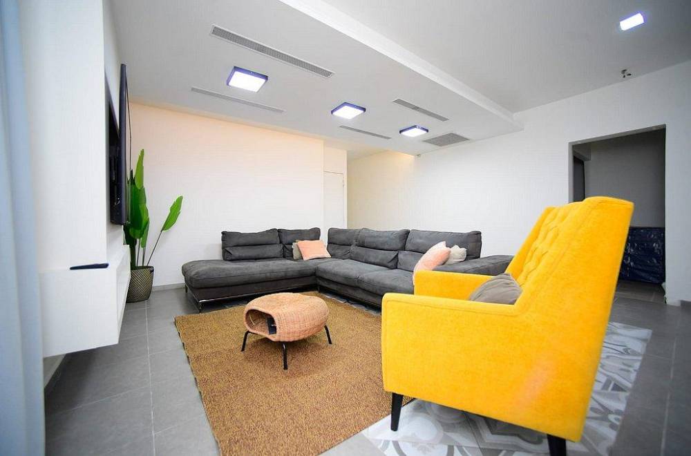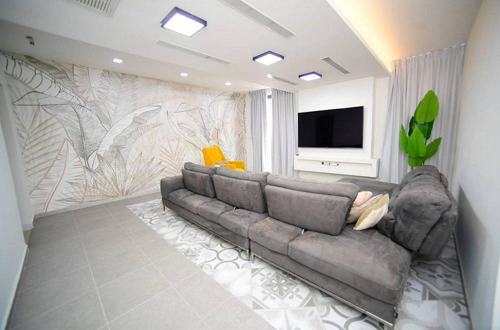סלון גדול מרווח עם כורסא גדולה ו-2 כורסאות ליחיד