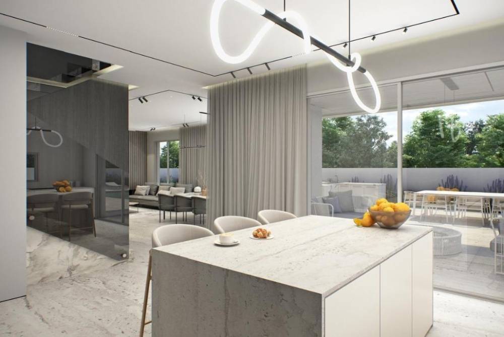 מטבח מאובזר במקרר, תנור, מיקרוגל, כיריים לבישול ואי