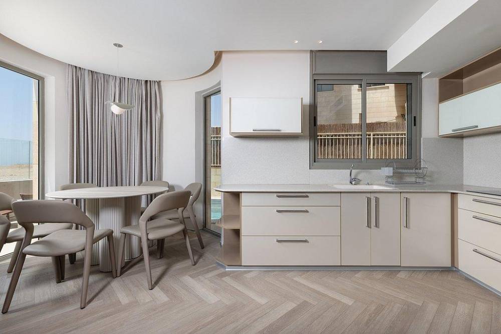 - מטבח מאובזר: מקרר, מיקרוגל, תנור אפייה, כיריים חשמליות, מדיח כלים, פינת קפה, מכונת אספרסו, פלטה, מיחם, כלי בישול והגשה