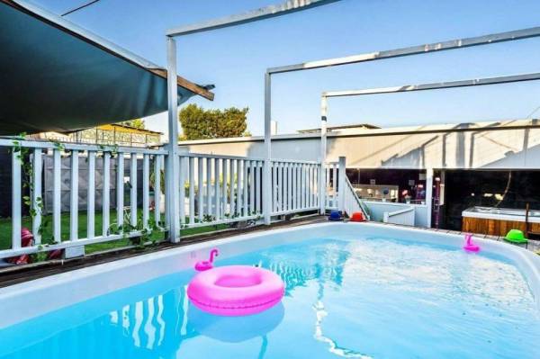 במתחם תמצאו עיצוב מוקפד, חדר קריוקי מבודד אקוסטית, חדר נסט מפנק ללינה, חדר סנוקר מקצועי, ג'קוזי ספא מפנק, בריכה פרטית גדולה ואטרקציות רבות שיעשו לכם אירוע בלתי נשכח. בחורף או בקיץ, תוכלו ליהנות מחצר ענקית ומרווחת (מקורה בעונה הקרה), פינות ישיבה וזולה, ערסלים, פינת BBQ מקצועית – המתחם מתאים לגילאי 12 ומעלה, עם אווירה שתרגש את כל המשתתפים.