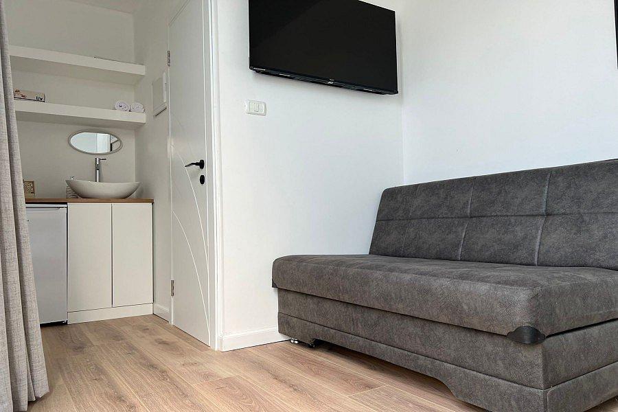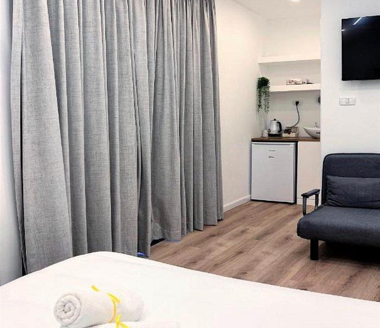 מיטה זוגית מוצעת, ספה נפתחת, מיזוג אוויר, מסך LCD, חדר רחצה עם מקלחון ושירותים, מטבחון הכולל: כיור, מקרר קטן וקומקום חשמלי