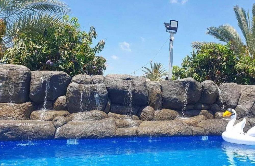 בריכת שחייה צלולה ומחוממת עם מפלי מים בגודל 8X4