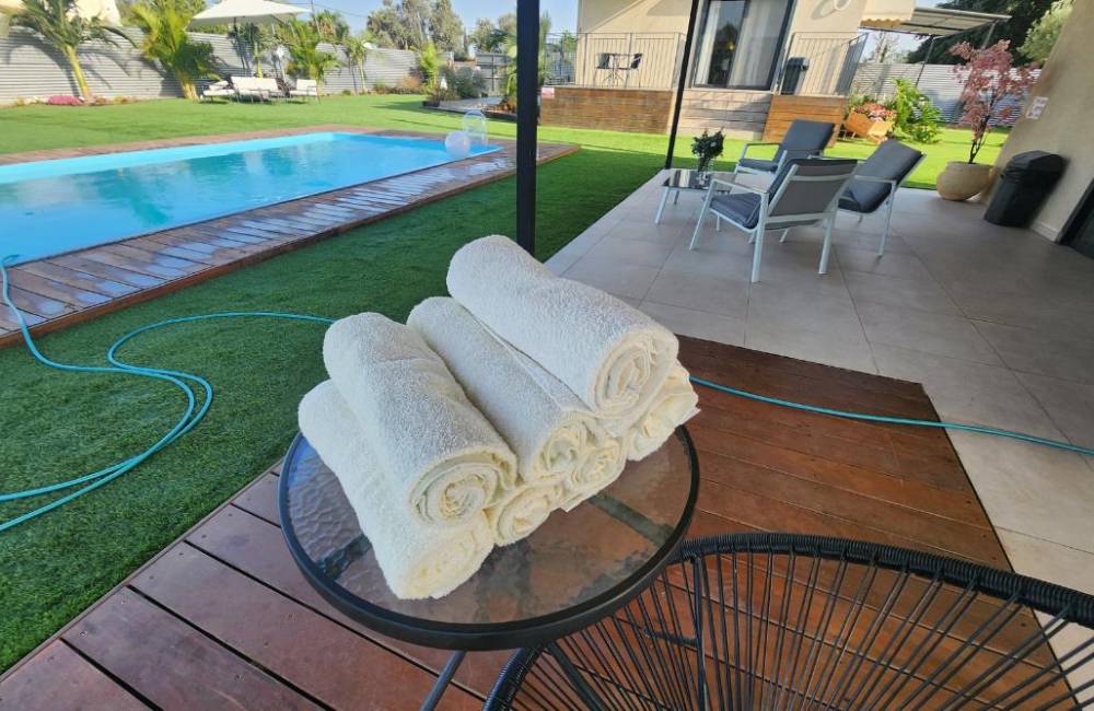 ברוכים הבאים למתחם המפנק שלנו "חלום של מקום" המקום שלנו שוכן על שטח רחב של 2 דונם, רווי בצמחייה ירוקה ועצי נוי, טניס שולחן, פינת BBQ, פינות שיזוף, פינות ישיבה וזולה, בריכת שחייה צלולה (מחוממת), מערכות תאורה ושמע ליצירת אירועים משפחיים ועיסקיים, פרגולה מקורה לחורף ואפילו וילת אירוח הכוללת 3 חדרי שינה מפנקים ויחידת אירוח נוספת.