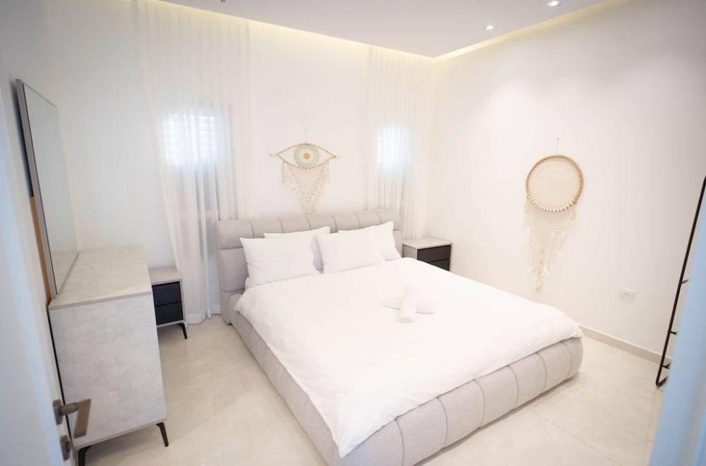 מיטה זוגית, מיזוג אוויר, טלוויזיה ושידות אחסון. לשלוש מחדרי שינה קיים גם חדר רחצה פרטי