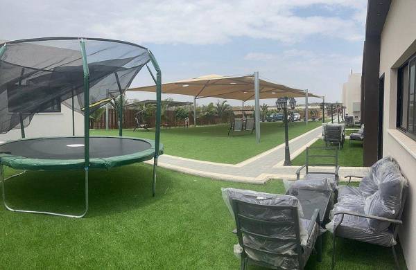 • טרמפולינה לילדים ומדשאות ירוקות רחבות
