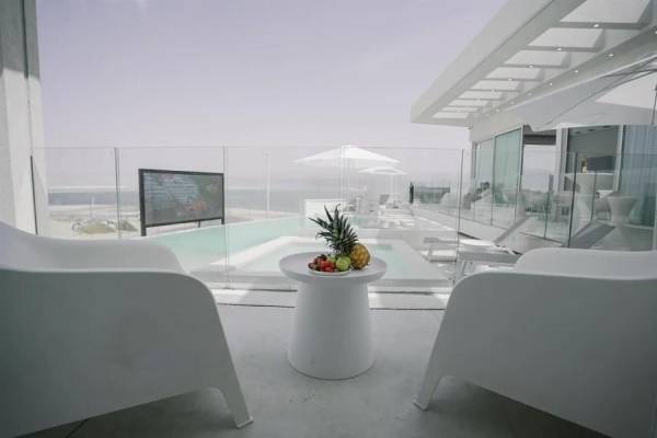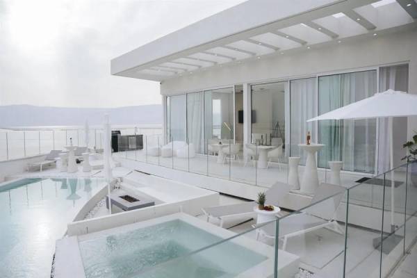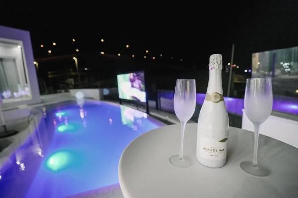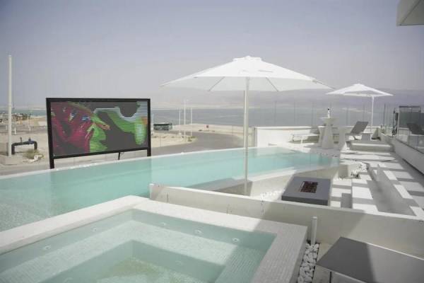 מתחם חיצוני הכולל: בריכה מחוממת, פינות ישיבה, מסך חיצוני SMART TV