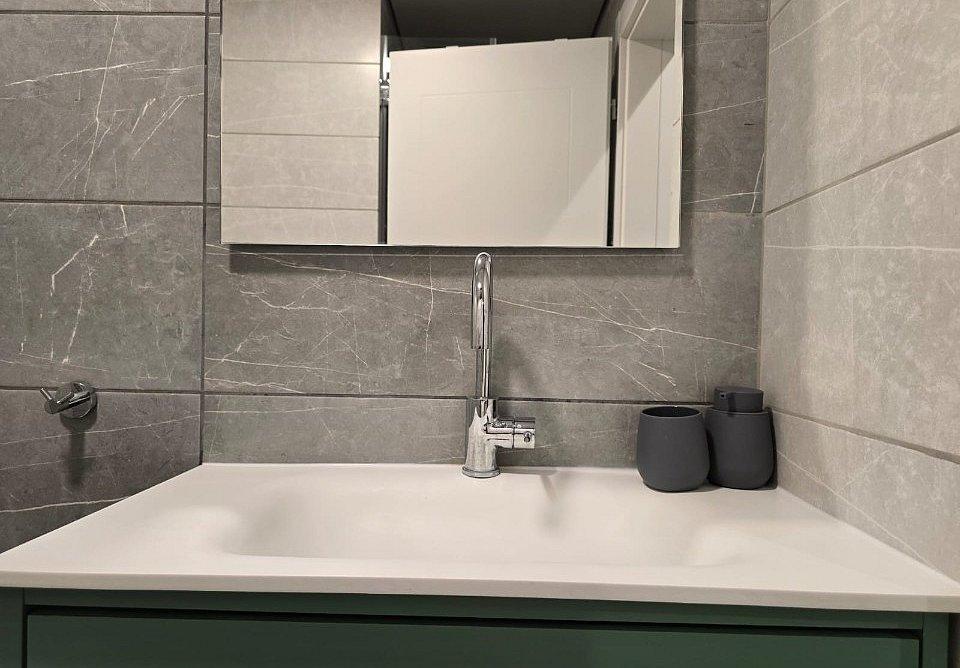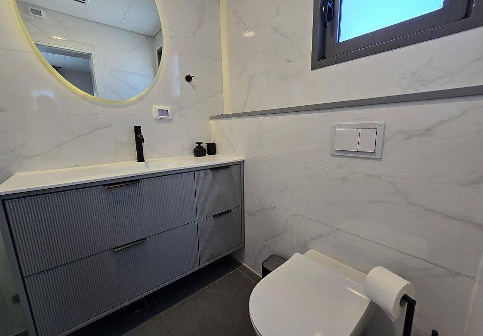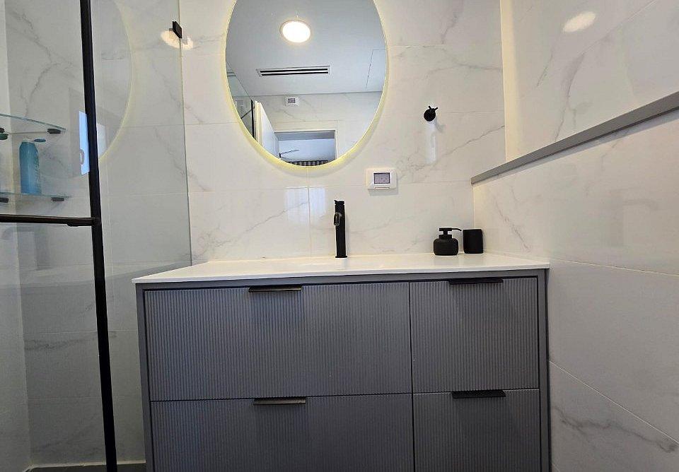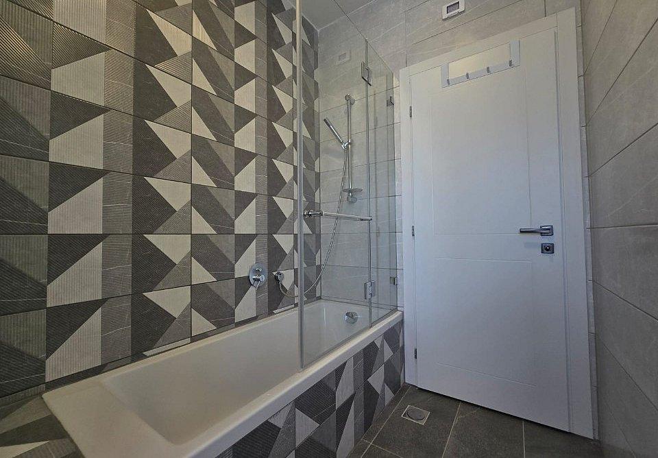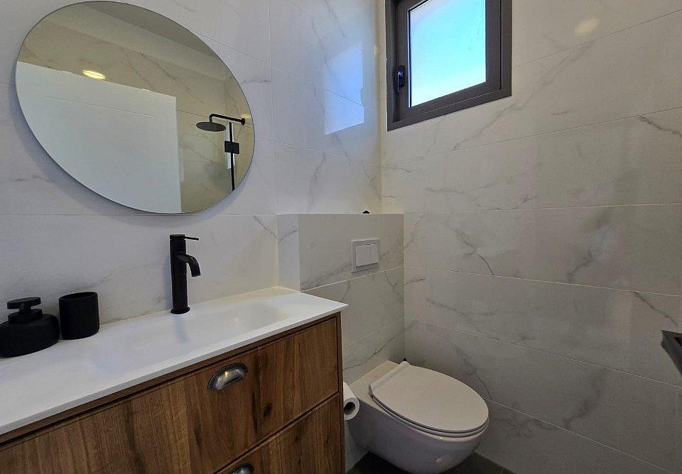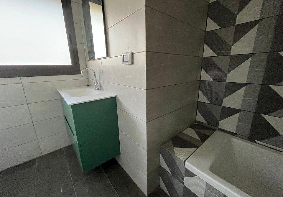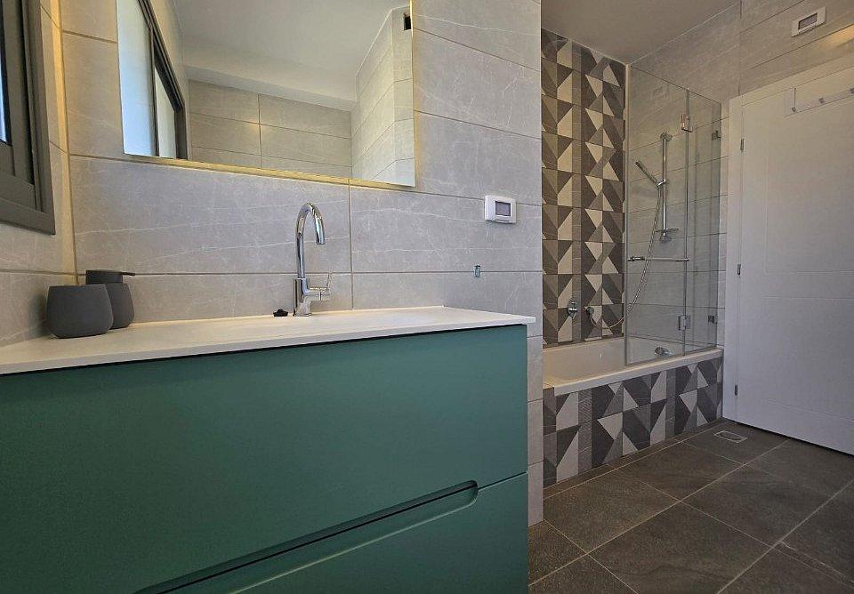 שלושה חדרי רחצה, אחד מהם עם אמבטיה