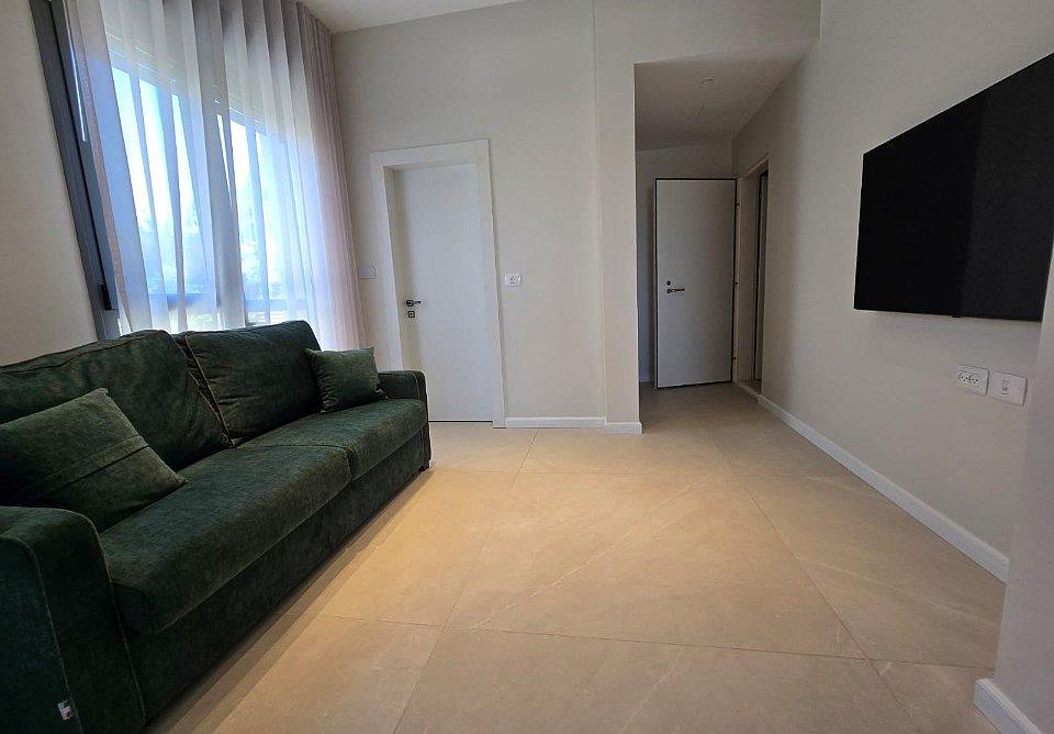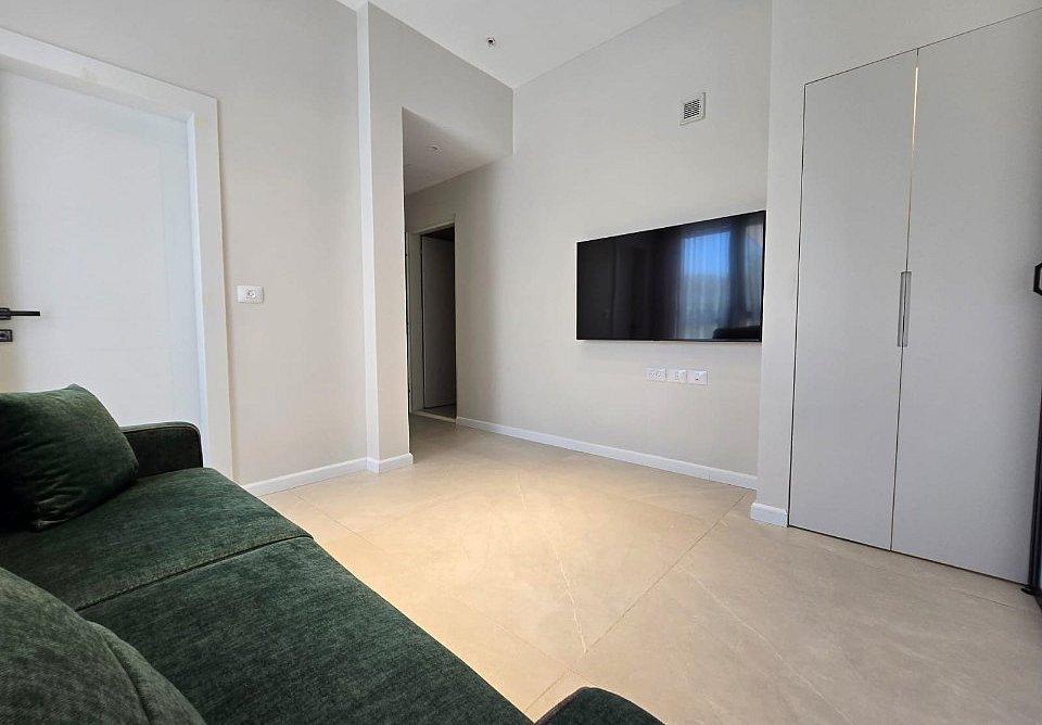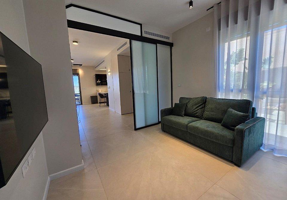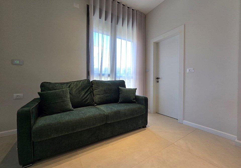 חדר טלוויזיה עם ספה נפתחת ומסך