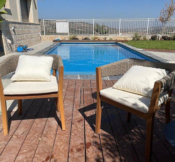 חוויה מדהימה של נופש במתחם ענק, עם שישה חדרי שינה מרווחים, חצר מטופחת ובריכה גדולה מול נוף עוצר נשימה של עמק האלה.