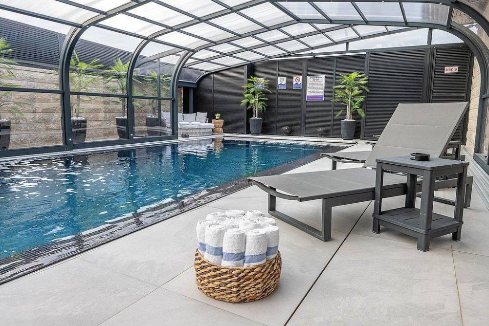 בריכת שחייה גדולה ומחוממת בגודל 10X4 בקירוי מיוחד