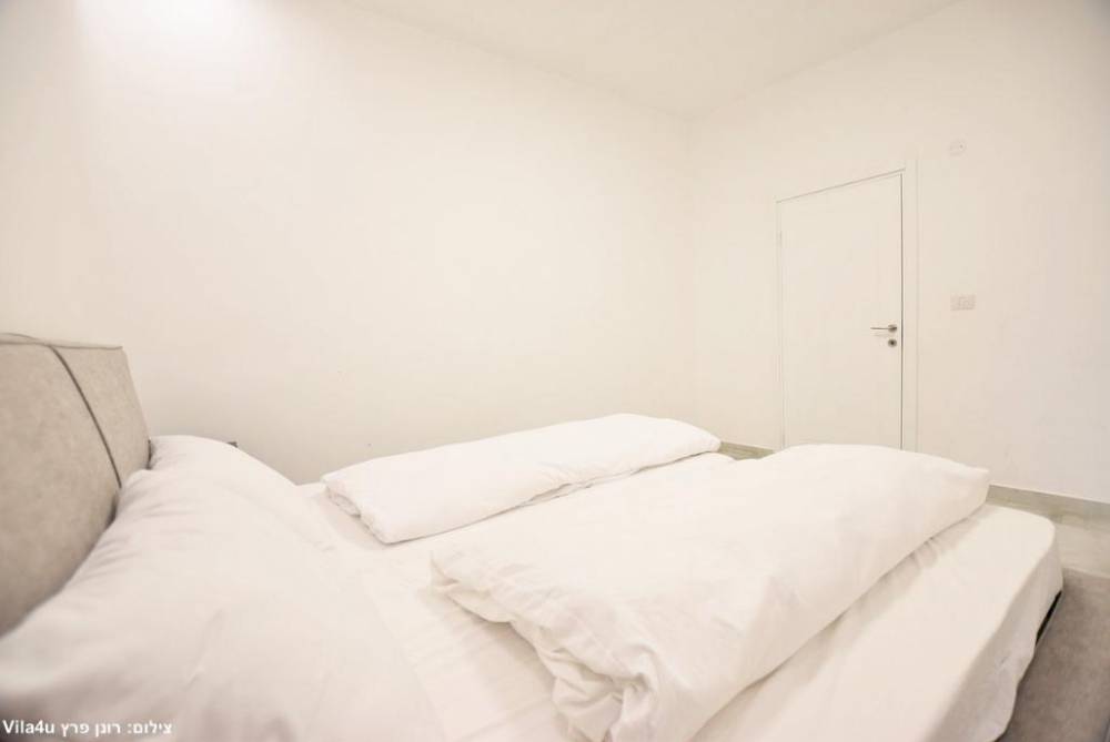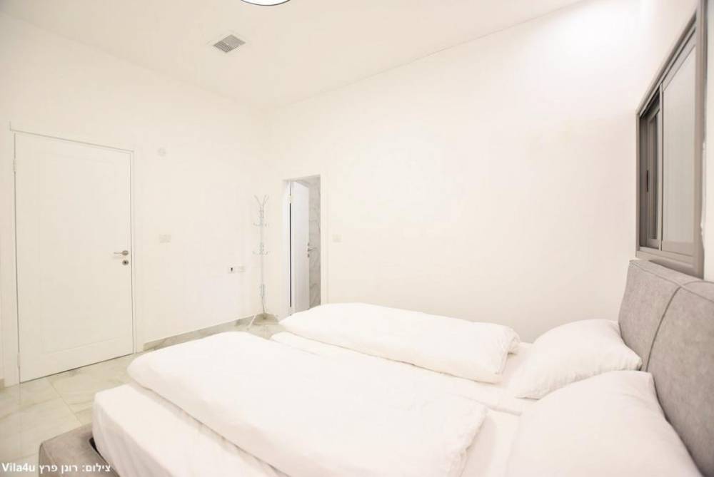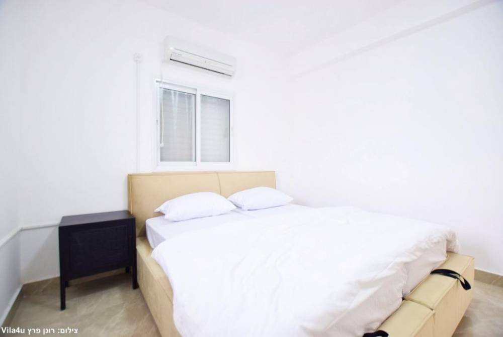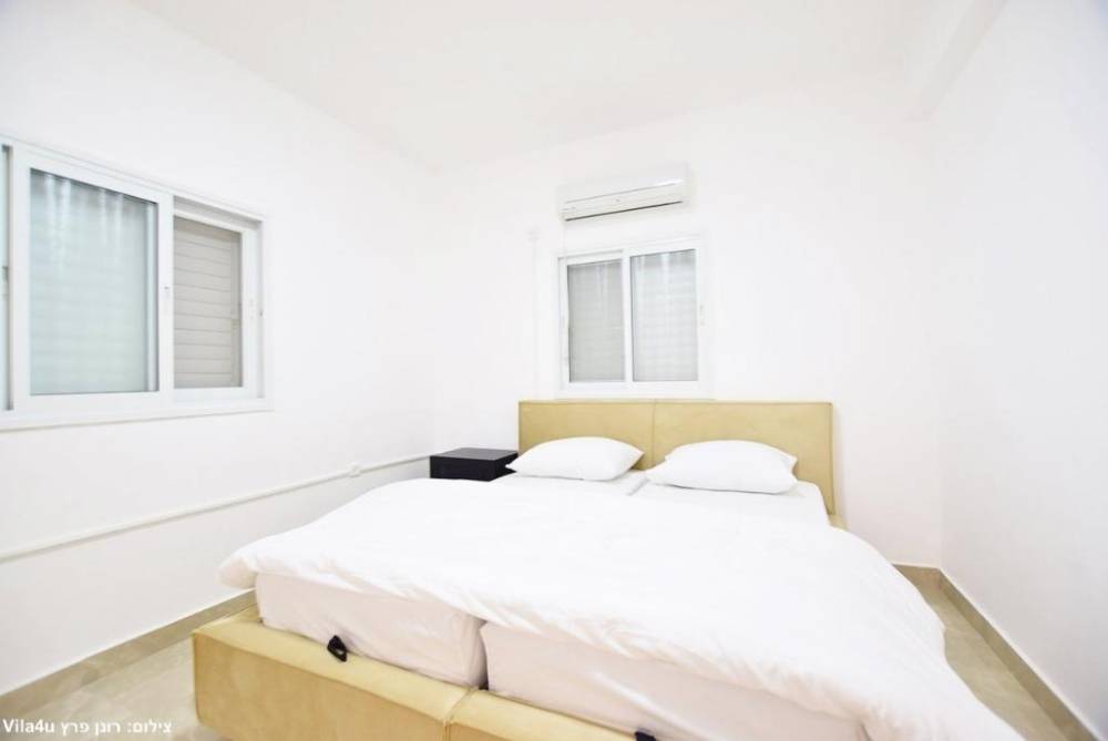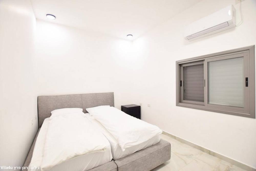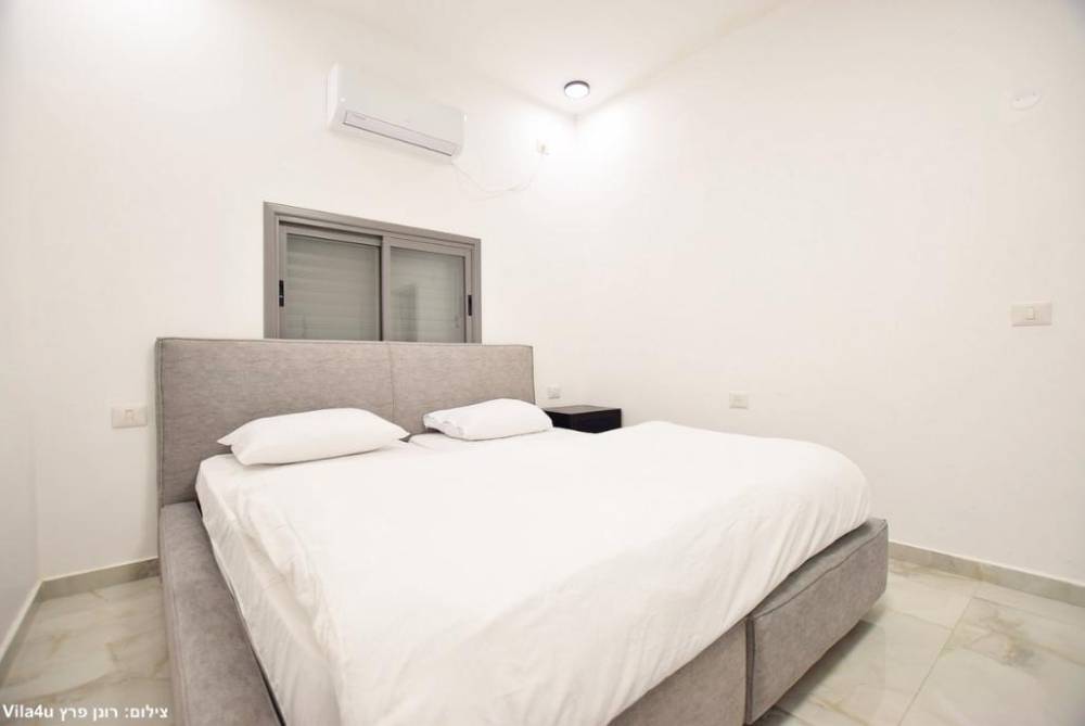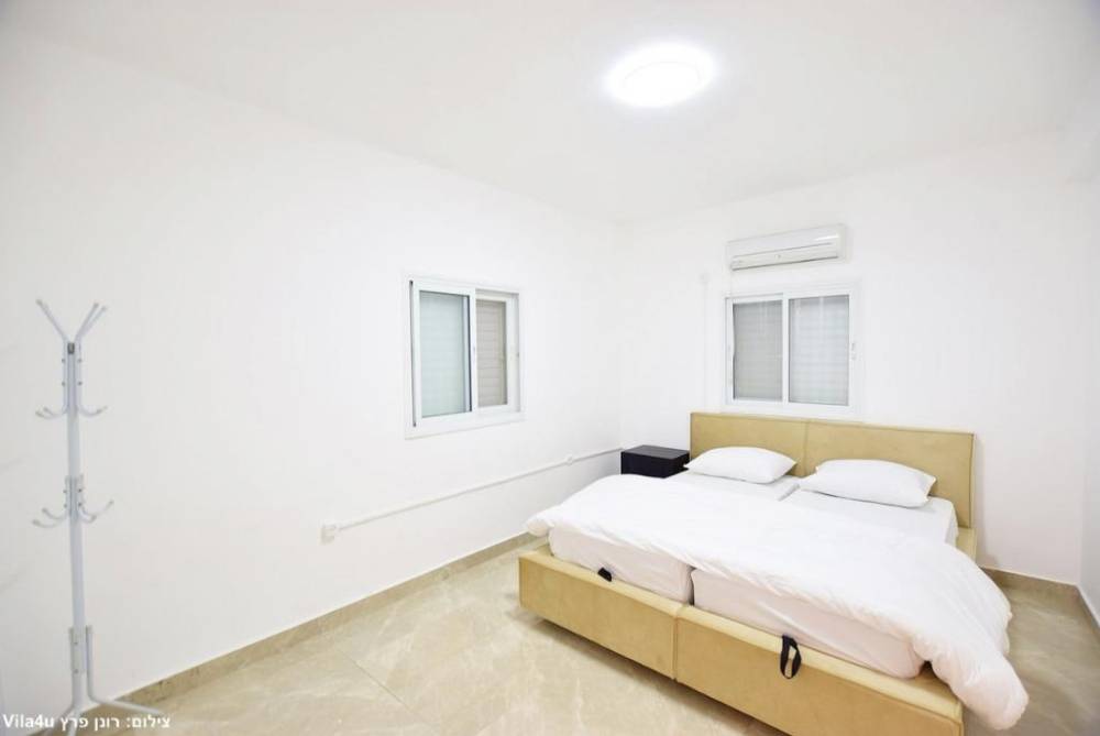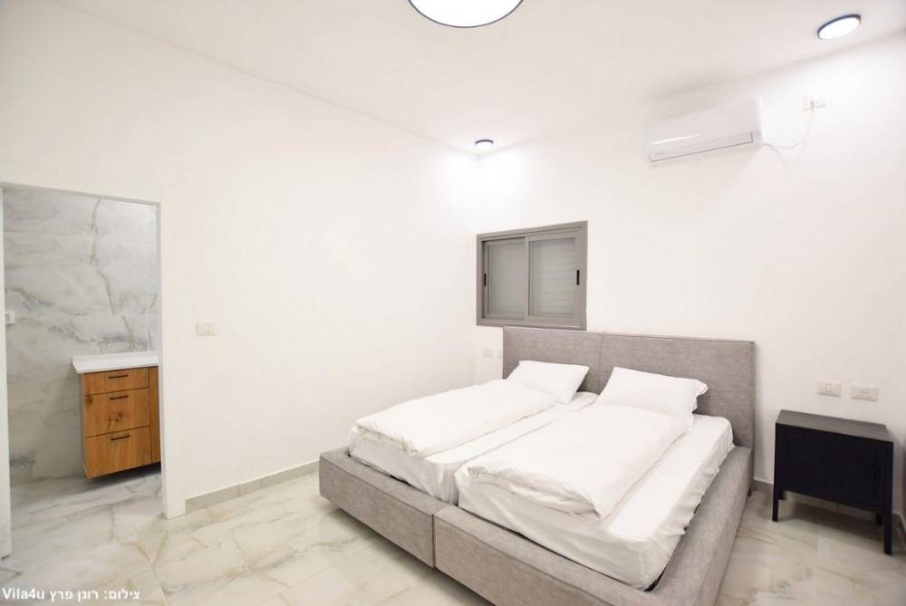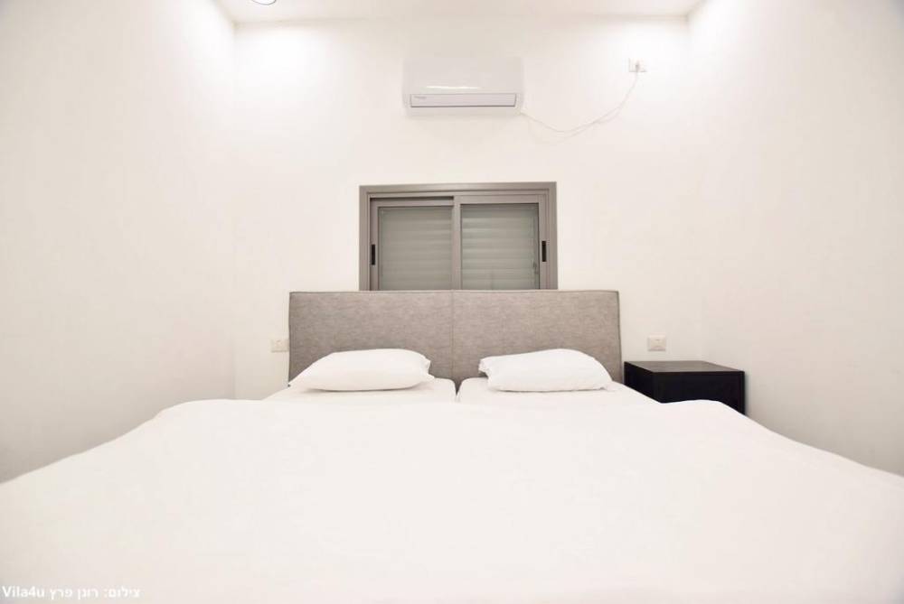 מיטה זוגית יהודית עם תאורת לצד כל מיטה, מזגן, שידות
