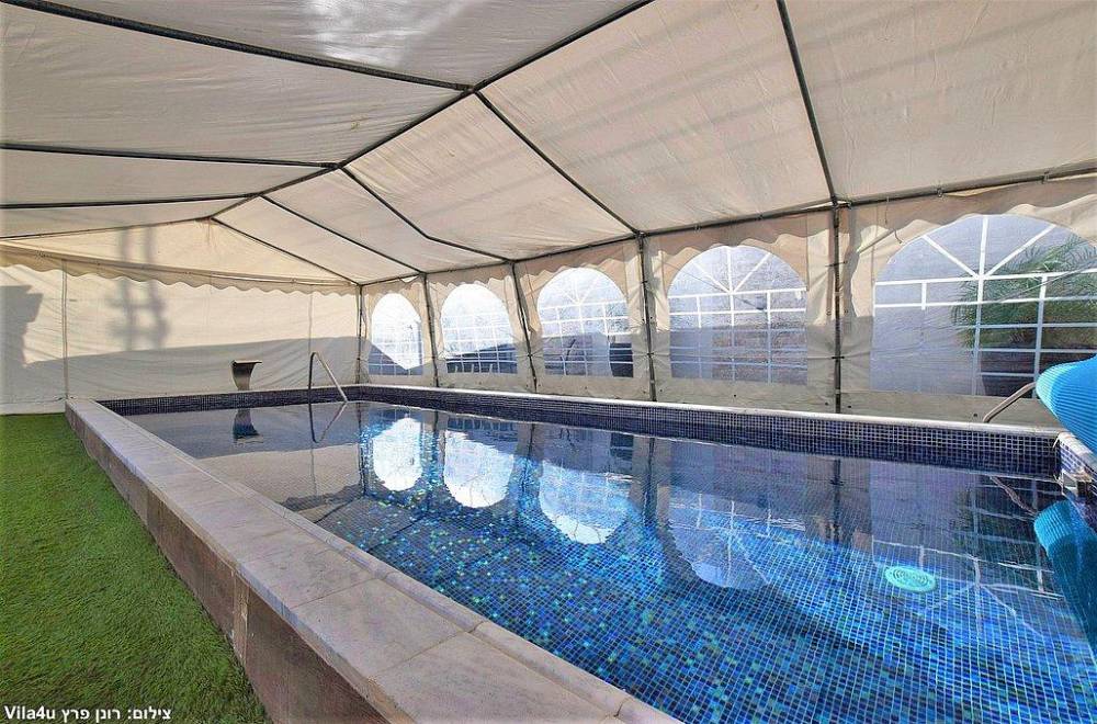 בריכה פרטית מחוממת ומקורה בהתאם לעונה, מידות: 10×5 מטר, עומק מקסימלי: 1.6 מטר