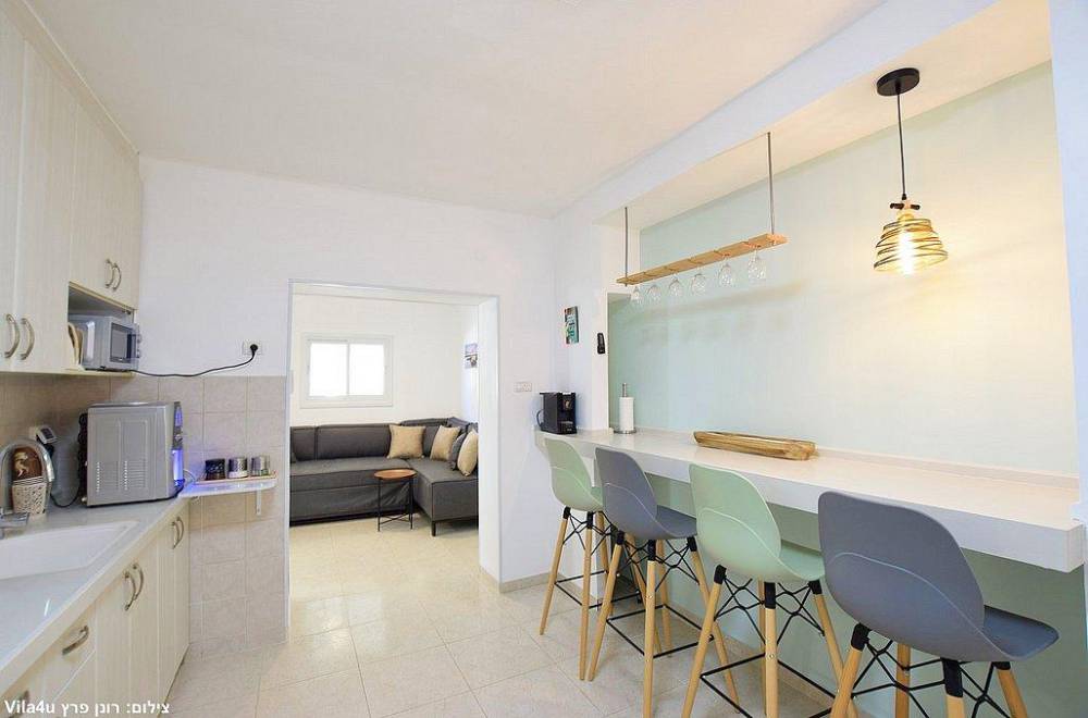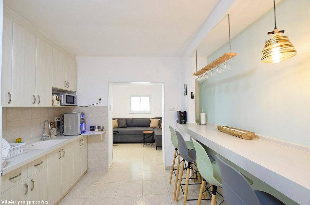 מטב הוילה מאובזר ב- 2 מקררים, מיקרוגל, פלטה ומיחם, מכונת קפה, מתקן מים מותאם לשבת, כלי אוכל והגשה