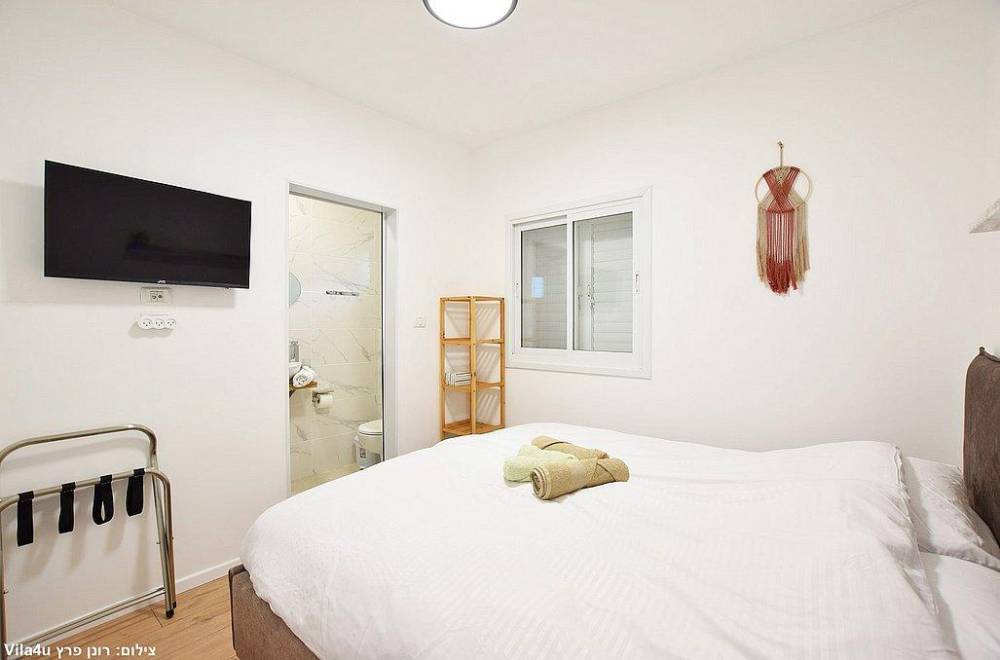 מיטה זוגית (מיטות יהודיות בכל הוילה) מיזוג אוויר, טלוויזיה, ארון או שידה