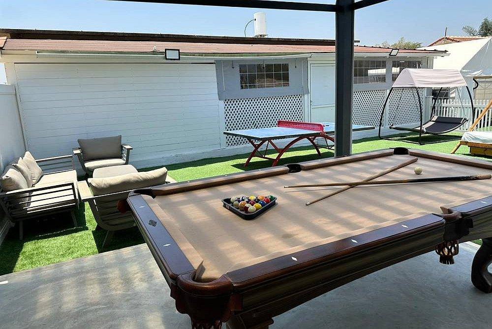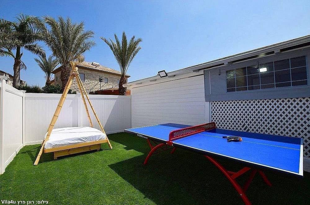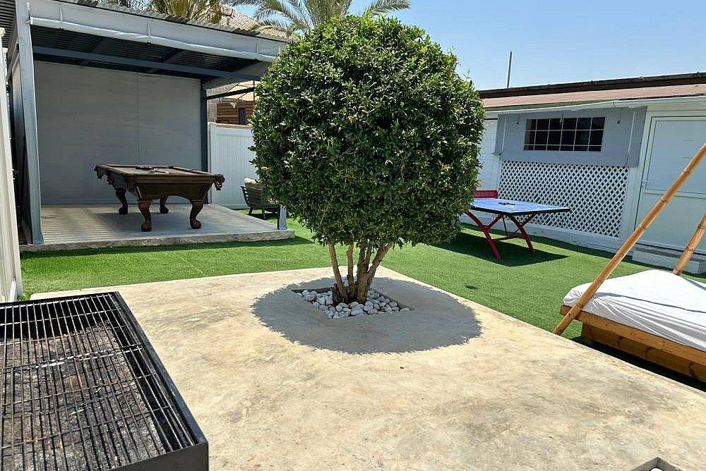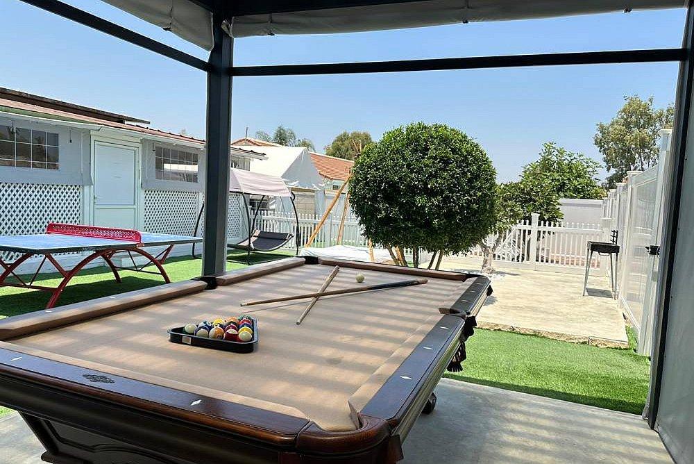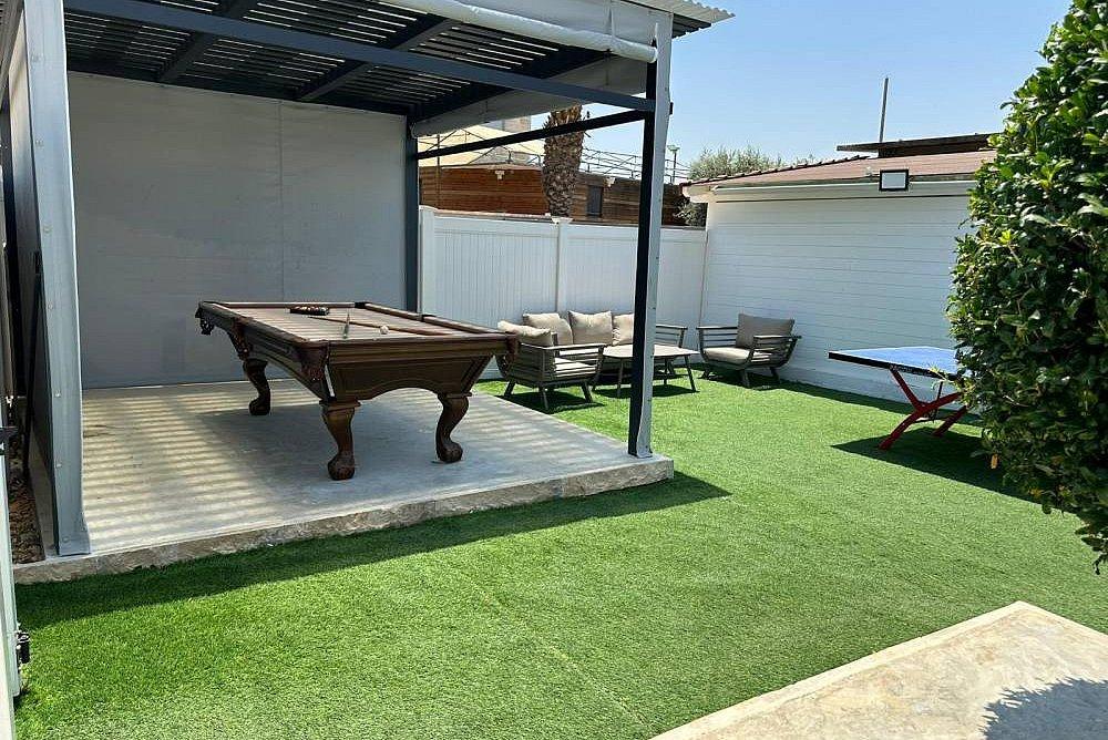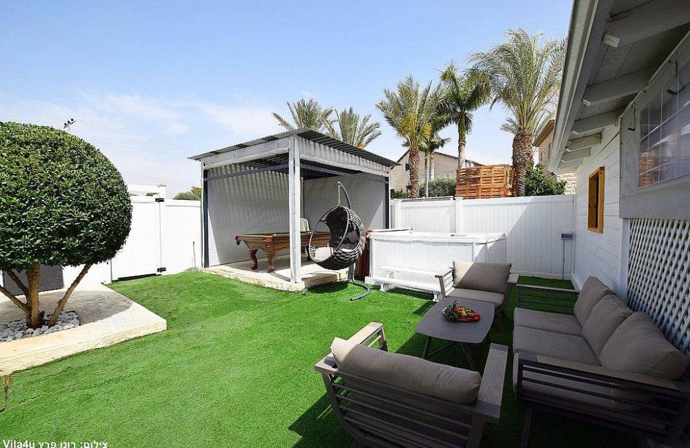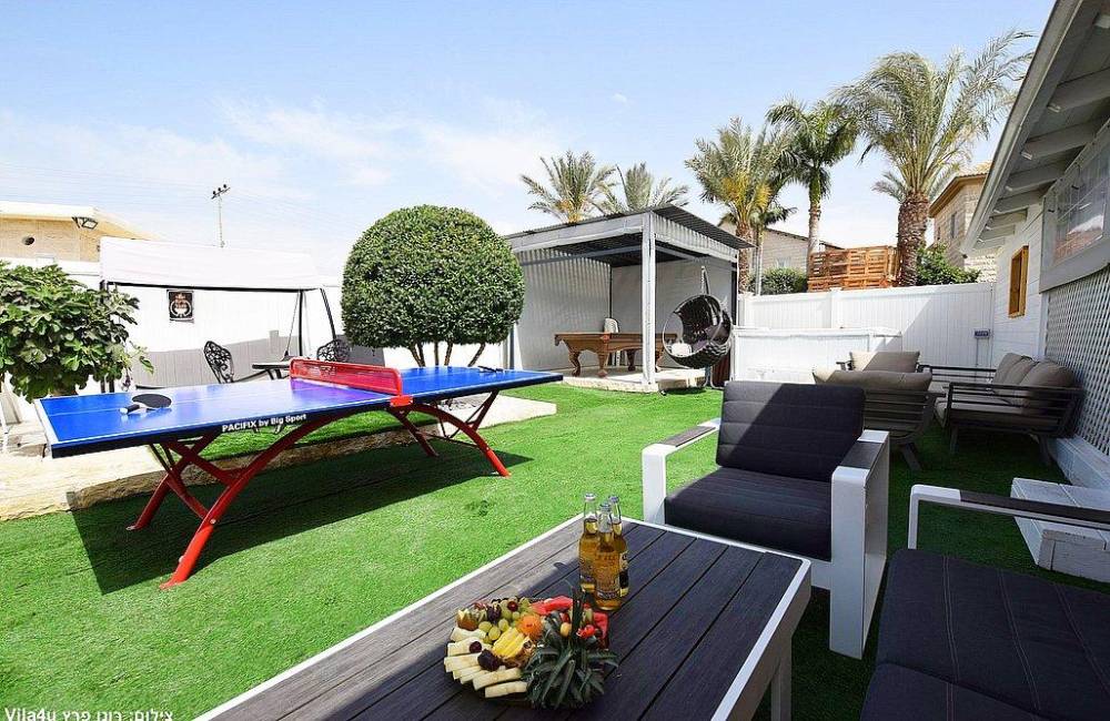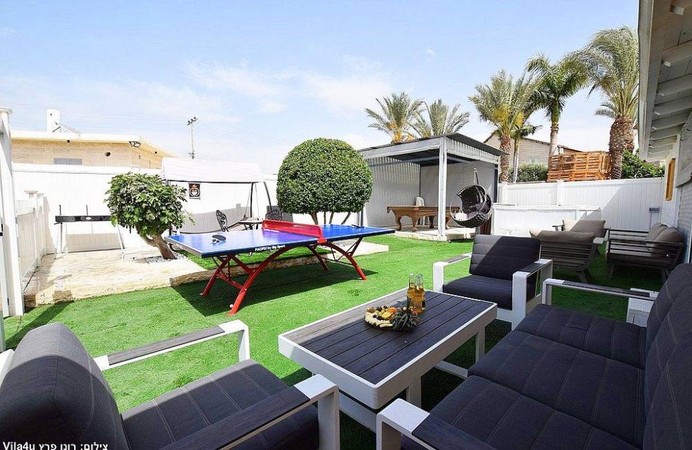 וילה מפנקת הכוללת חצר מושקעת עם בריכת זרמים, שולחנות משחק, 5 חדרי שינה נוחים, סלון מרוהט ומטבח מאובזר.