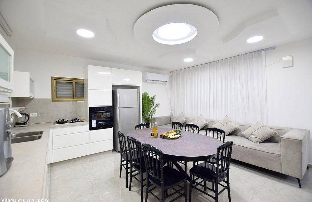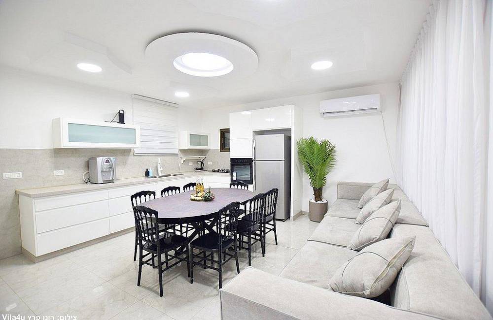 מטבח גדול עם כל הציוד הנחוץ – מקרר, תנור, כיריים, מיקרוגל, קומקום
