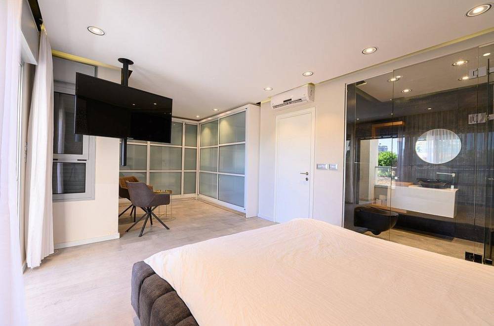 סוויטת הורים > מיטה זוגית, טלוויזיה 50 אינץ עם חיבור לHOT, חדר רחצה פרטי, חדר ארונות, יציאה למרפסת בגודל 8 מ"ר