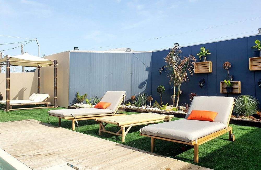 מדשאות ענקיות עם פינות ישיבה, פטריות חימום