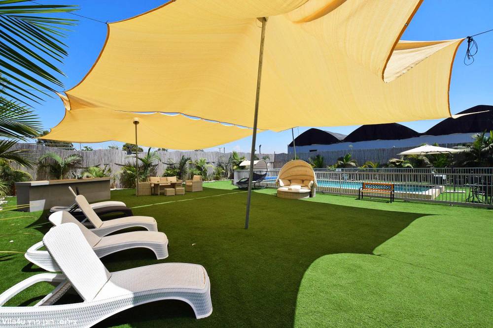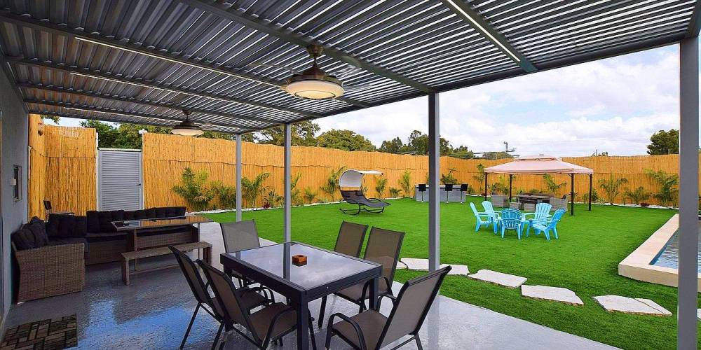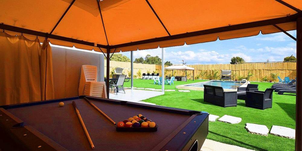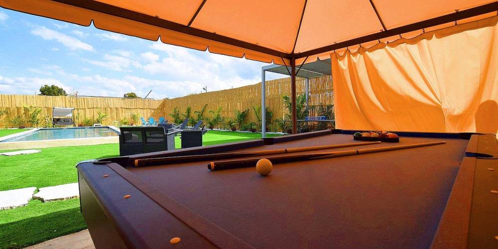 שולחן סנוקר תחת לפרגולה גדולה