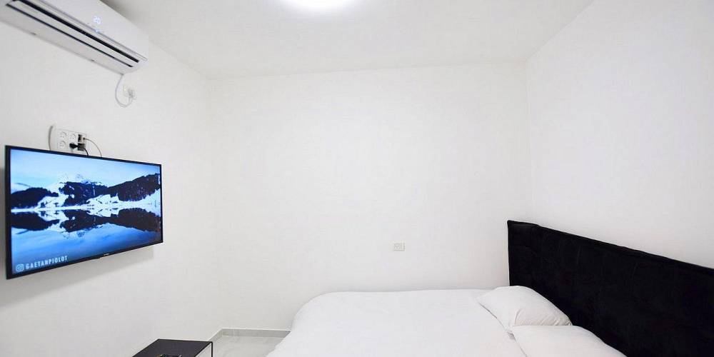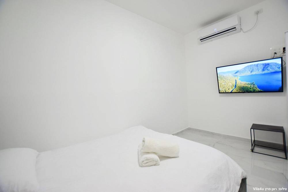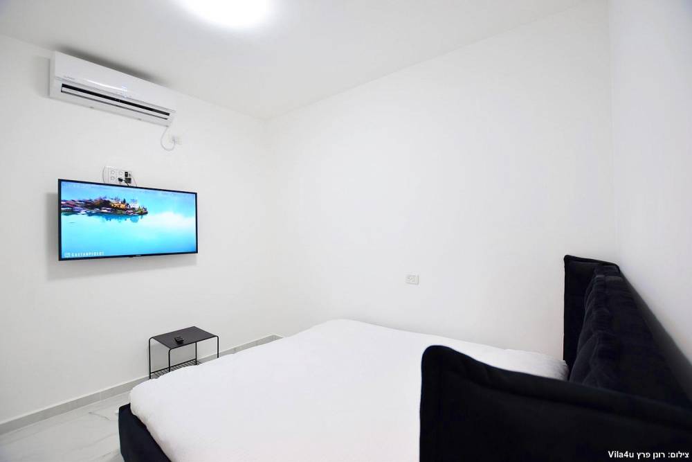 מיטה זוגית מוצעת, מיזוג אוויר, שידה וטלוויזיה בגודל 40 אינץ'