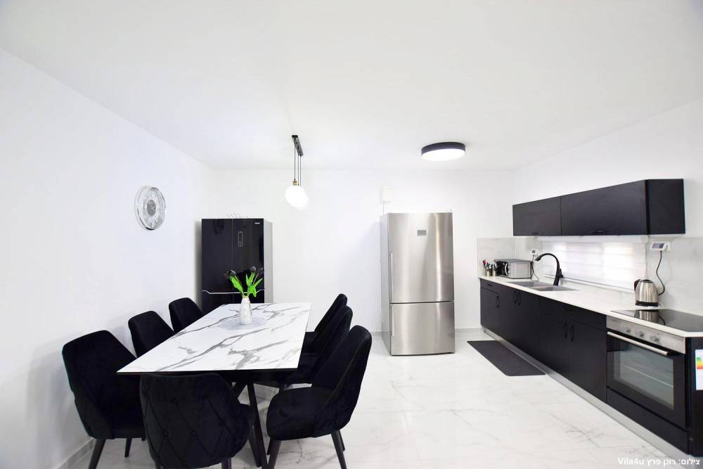 מטבח מאובזר בכיריים אינדוקציה, תנור בילד אין, קומקום חשמלי, פלטה ומיחם לשבת, מתקן מים שומר שבת