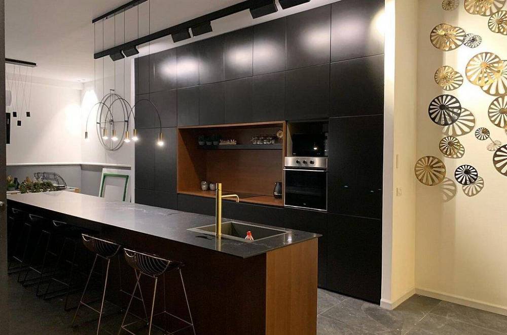 מטבח מאובזר בשלמות – כלי אוכל ובישול, אי מודרני, תנור אפייה, טוסטר, מקרר גדול, מיקרוגל ועוד