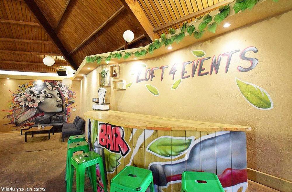 פור לופט איוונטס מתחם מפואר הממוקם באבן יהודה ומתאים לאירועים ומסיבות מכל סוג עד 70 איש ומתאים את עצמו בשל עיצובו גם לחודשי החורף (המתחם מקורה) וגם לחודשי הקיץ..