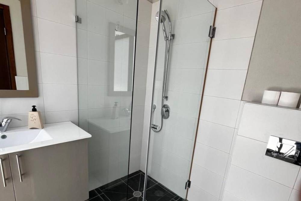 חדר רחצה אסתטי עם מקלחת ושירותים
