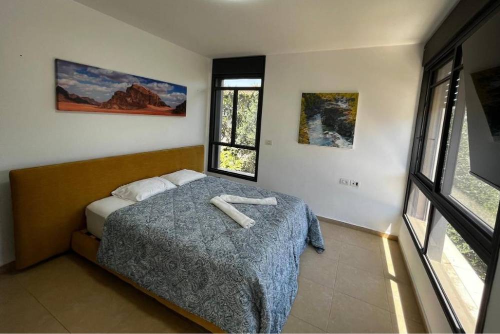 חדר שינה 3 כולל: מיטה זוגית, שידות לאחסון, טלוויזיה חכמה, חדר רחצה מאובזר, חלונות גדולים אל מול הנוף.