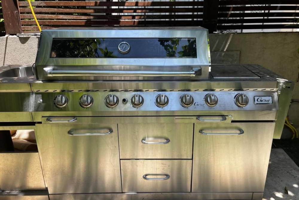 פינת גריל עם מטבח חוץ ומשטח עבודה