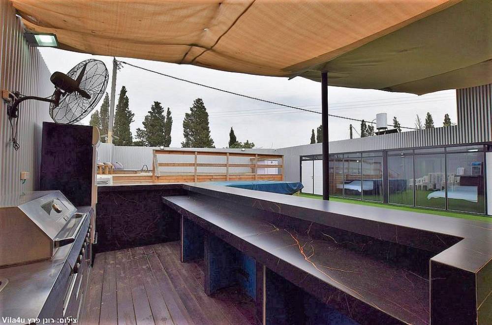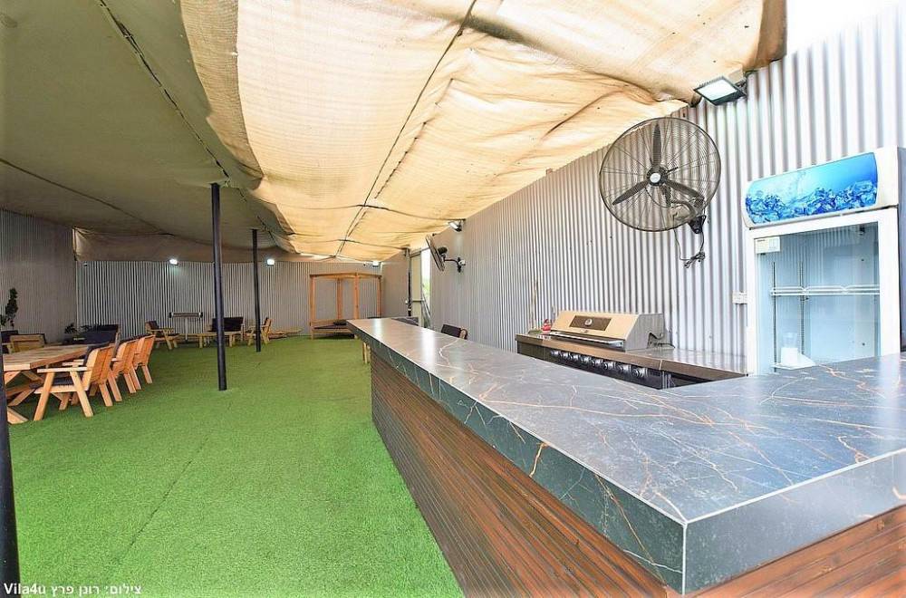 בר שתייה ומטבח מאובזר הכולל מקררים ומקפיא, כיריים, צ'יפסר ועמדת מנגל
