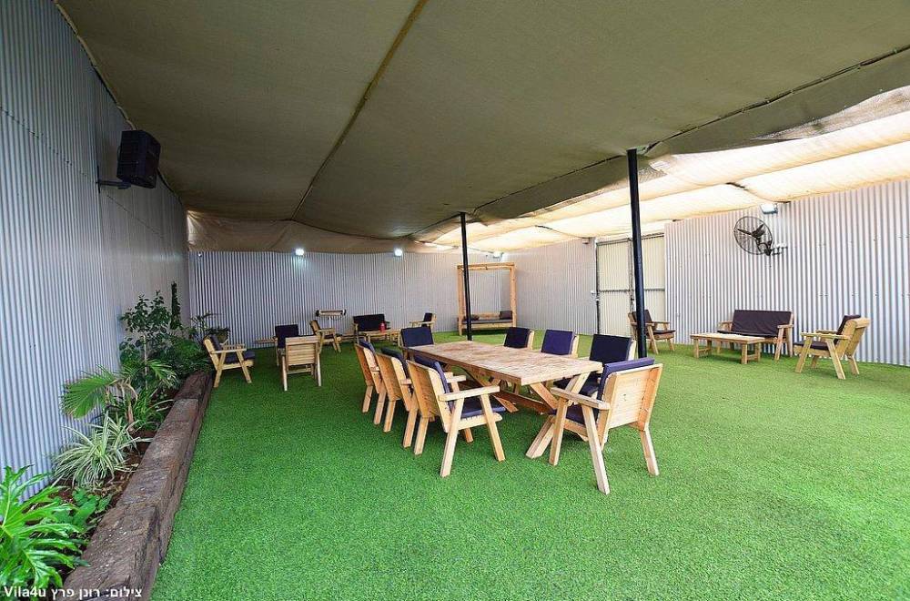 המתחם כולל כל מה שצריך למסיבה מושלמת - מערכת הגברה מקצועית, בריכת שחייה צלולה, ג'קוזי ספא, עמדת מנגל, רחבת מדשאות גדולה עם פינות ישיבה ועוד.