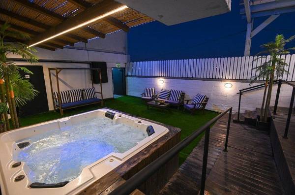 ג'קוזי ספא גדול עם ספסלי ישיבה ומשענות ראש