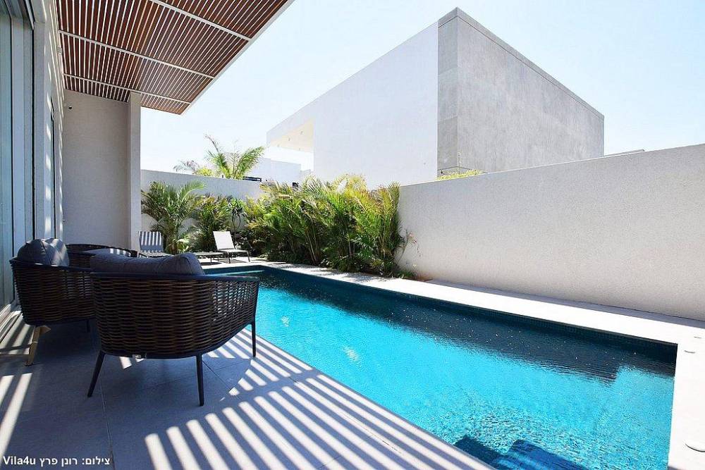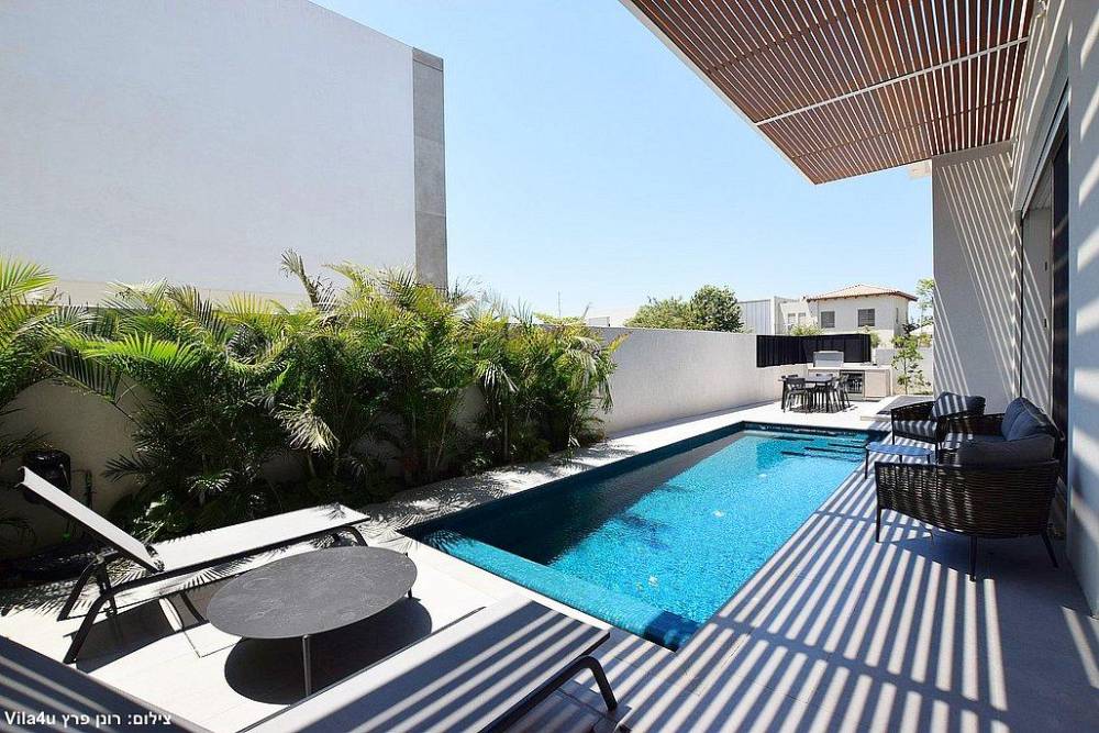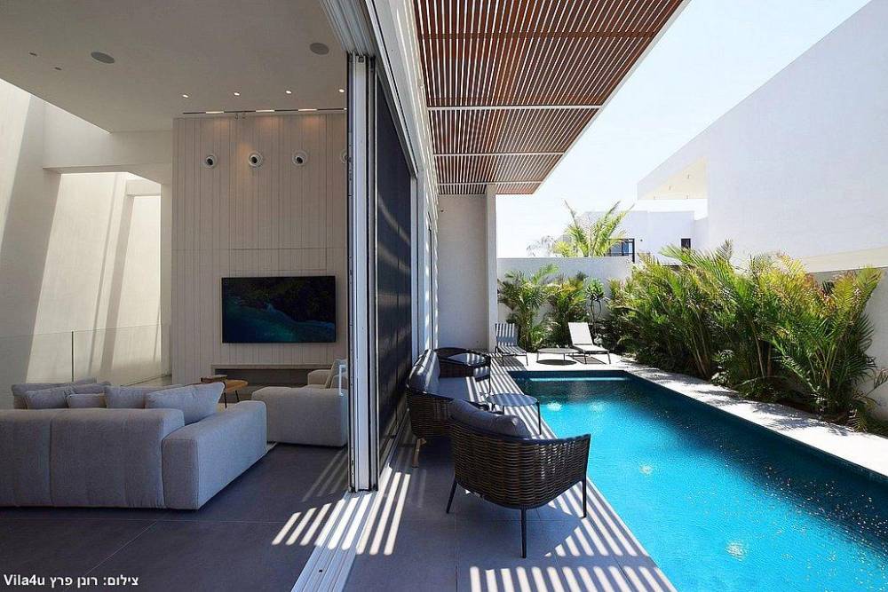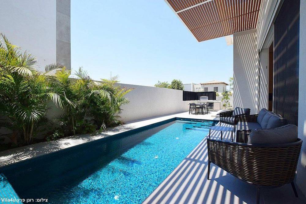 תקרה בגובה 6 מטרים ליצירת תחושת מרחב ויוקרתיות, חצר עם בריכה פרטית מפנקת, מטבח חוץ מאובזר- כל מה שצריך כדי להירגע באמת.
