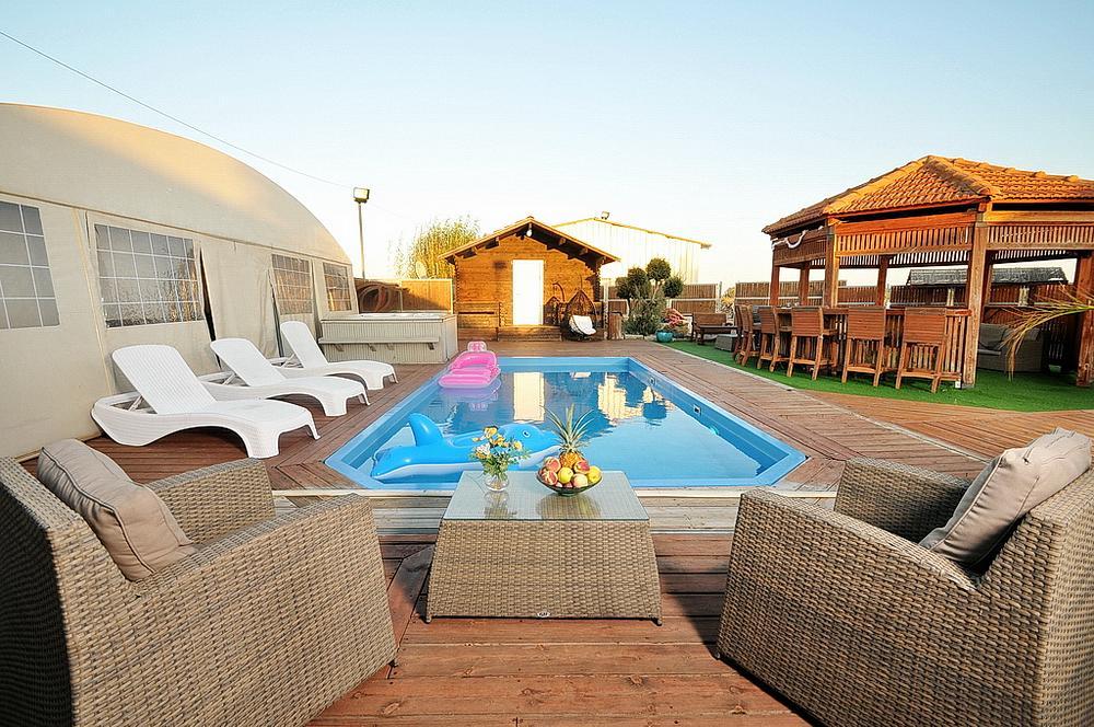 כל מתחם הבריכה והג'קוזי מקורה ומחומם בחורף
