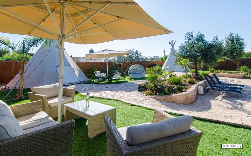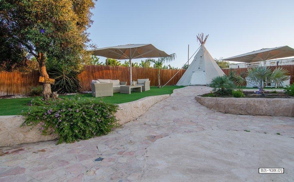 מתחם אירוח בדרום הכולל 4 אוהלי טיפי
