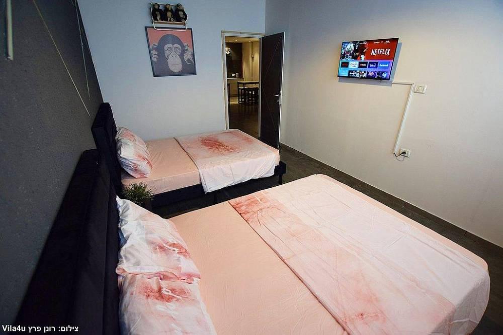 - 2 חדרי שינה גדולים ומעוצבים כל חדר כולל מיטה זוגית, ומסך טלויזיה LCD
