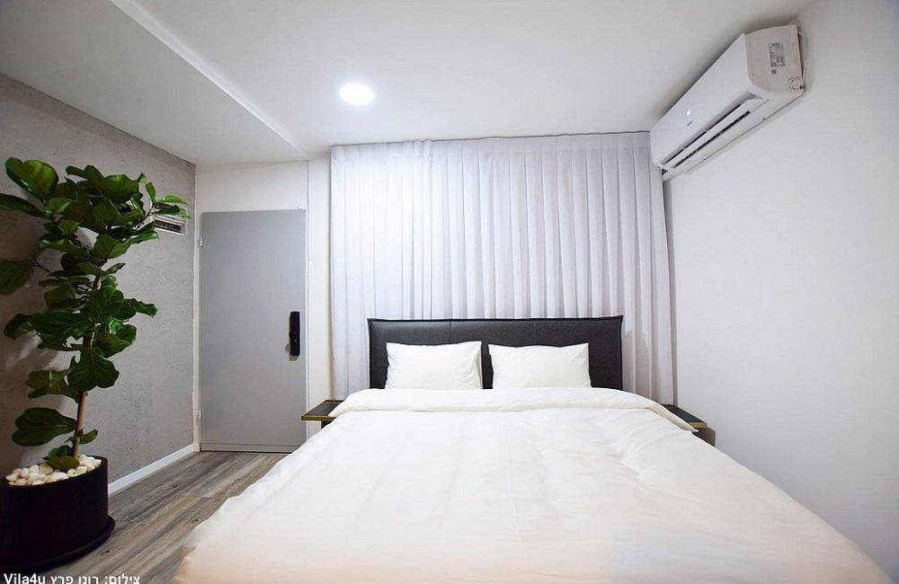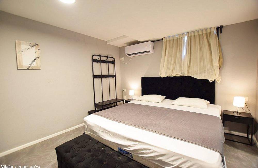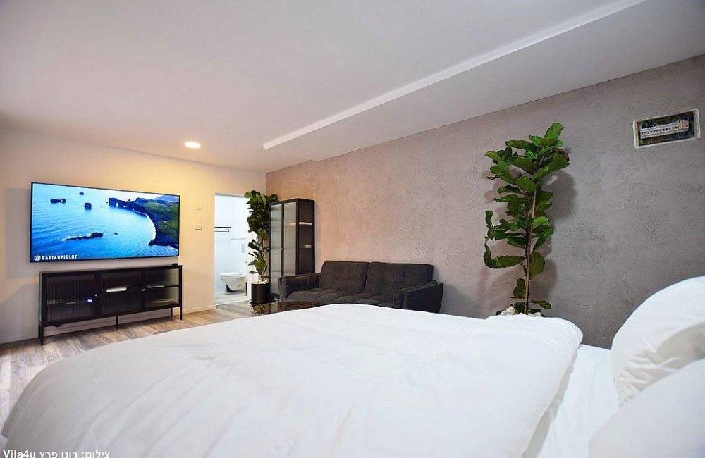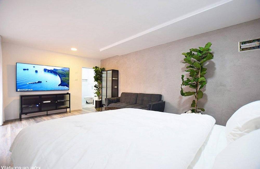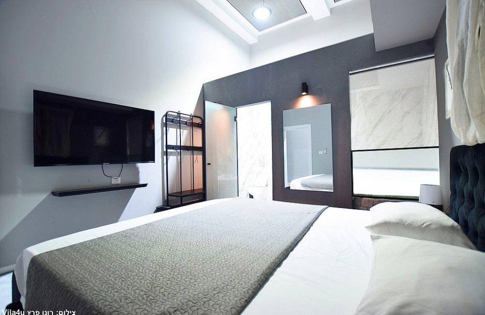 מיטה זוגית, טלוויזיה, מיזוג אוויר וחדר לרחצה.