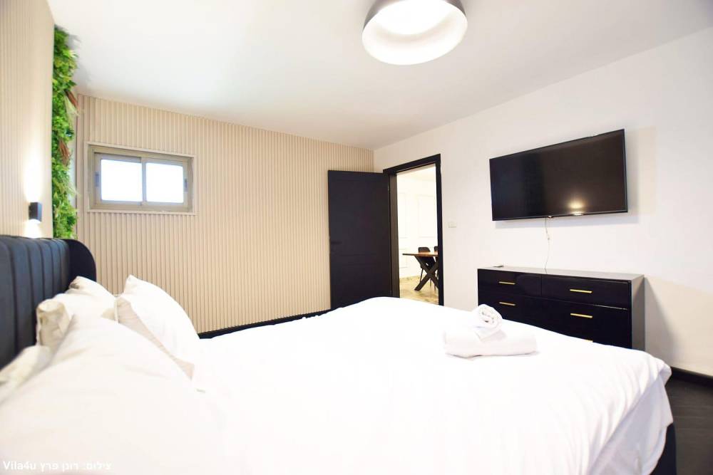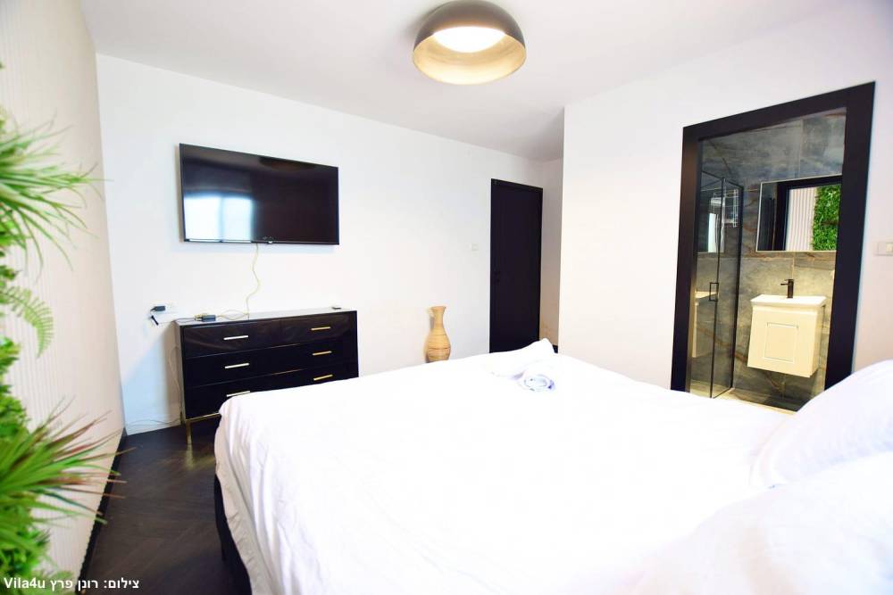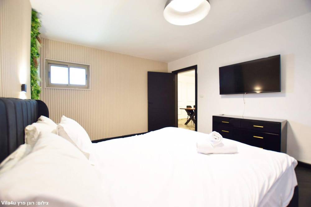 אבזור החדרים: בכל חדר שינה מיטה זוגית, מיזוג אוויר, שידות אחסון, טלוויזיה וחדר רחצה פרטי